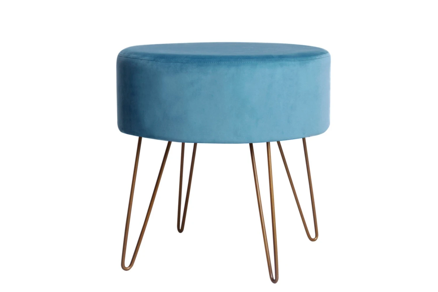 Modernes Design wird hier mit edlem Samt kombiniert. Der petrolfarbene ist ein echter Eyecatcher und wird in Ihrem Wohnraum ein tolles Highlight sein. Die Metallfüße sind leicht ausgestellt, so dass das moderne Design unterstrichen wird. Mit einem Durchmesser von ca.45 cm und einer maximalen Belastbarkeit von ca. 120 kg ist er nicht nur als Dekorationselement zu nutzen.