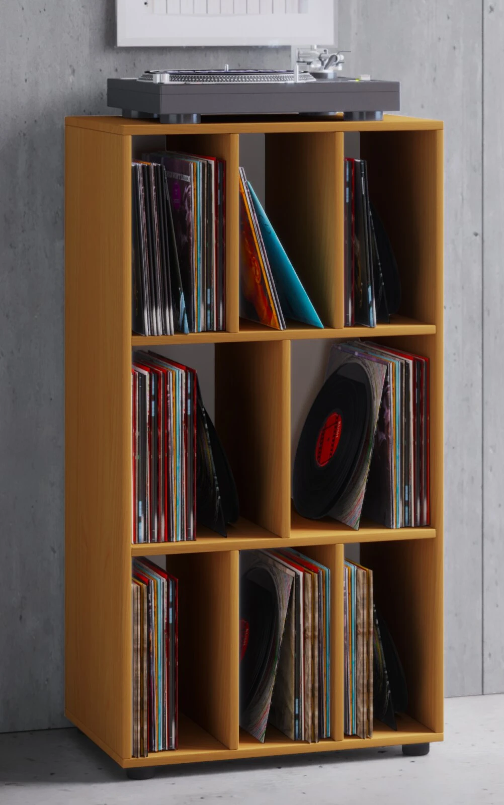 Dieses Schallplattenregal SCHALTINO in Buche Nachbildung bietet mit seinen acht Fächern viel Platz für all Ihre Vinyl-LPs. Durch die zeitlose und elegante Optik passt es garantiert in jedes Wohnzimmer.