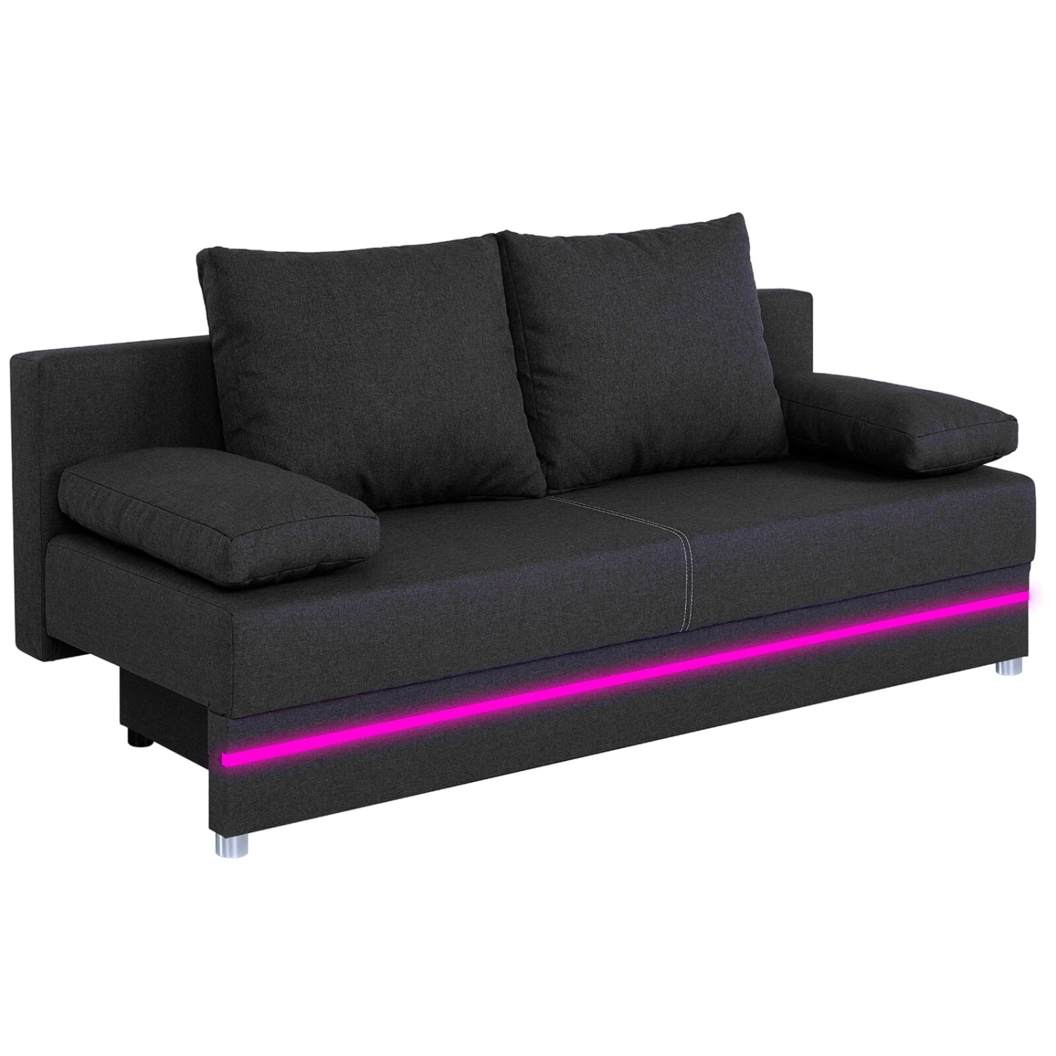 Schlafsofa – anthrazit – Staukasten – mit LED-Leiste