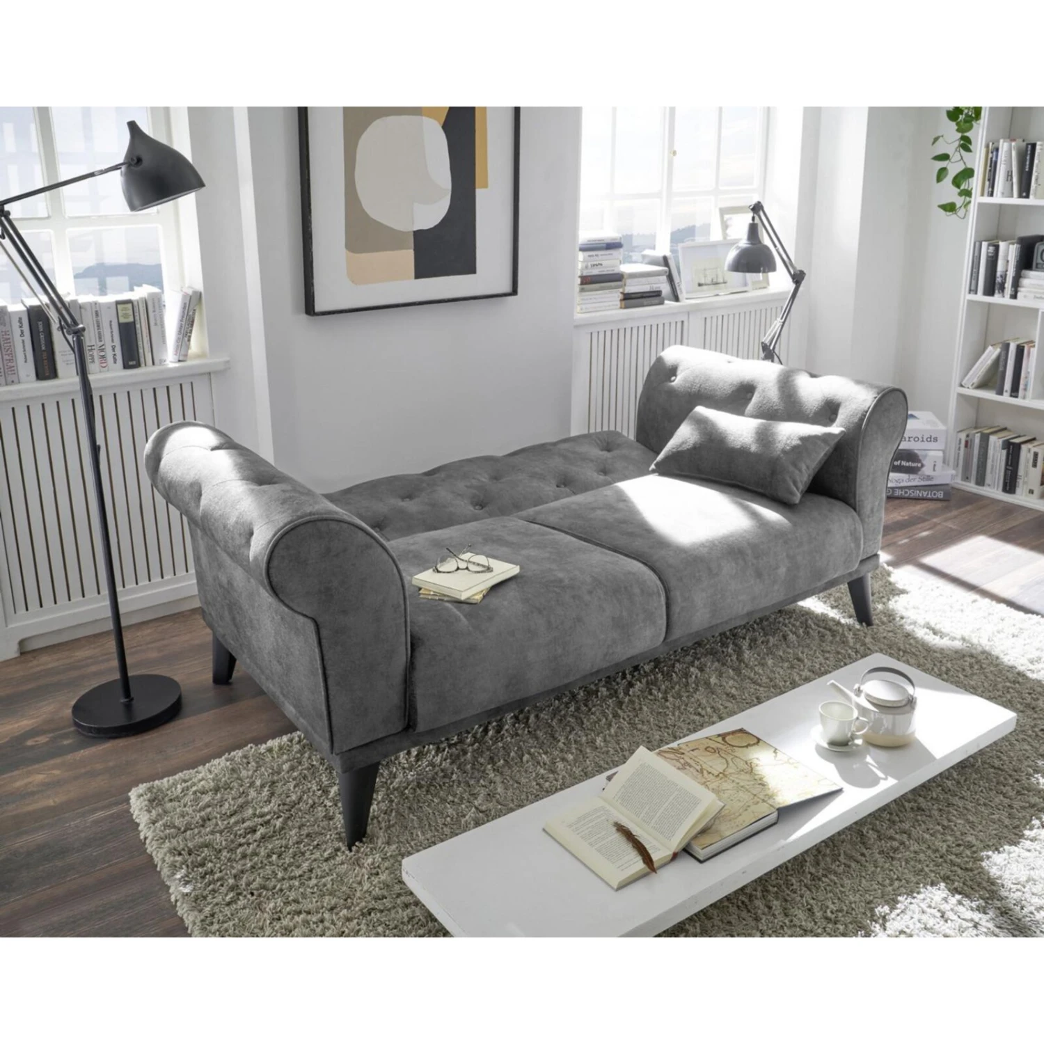 Schlafsofa – grau – inklusive Kissen