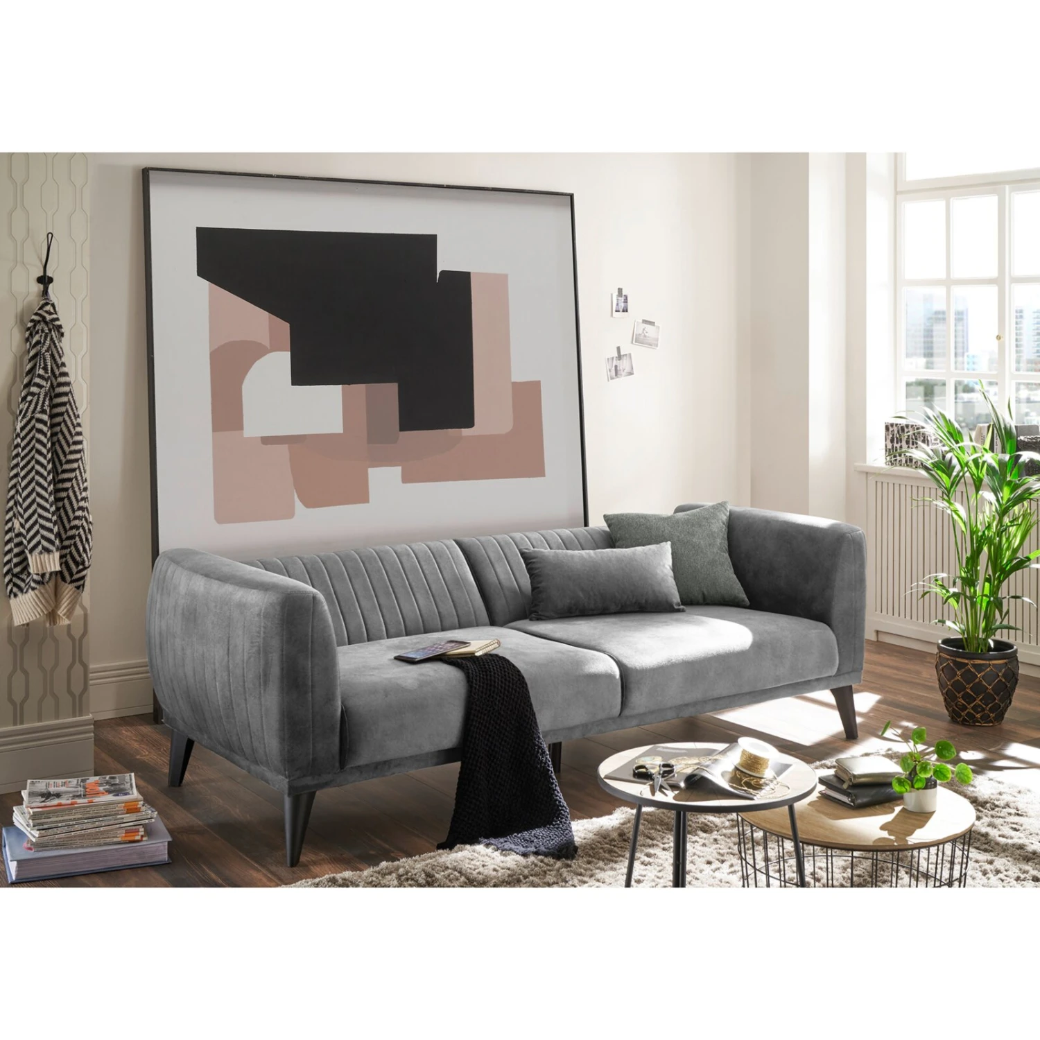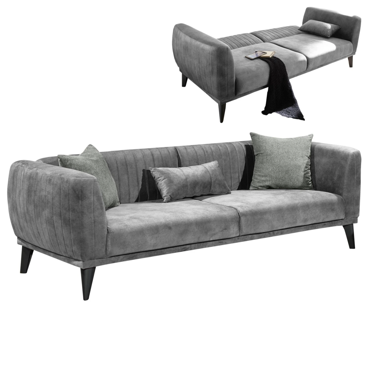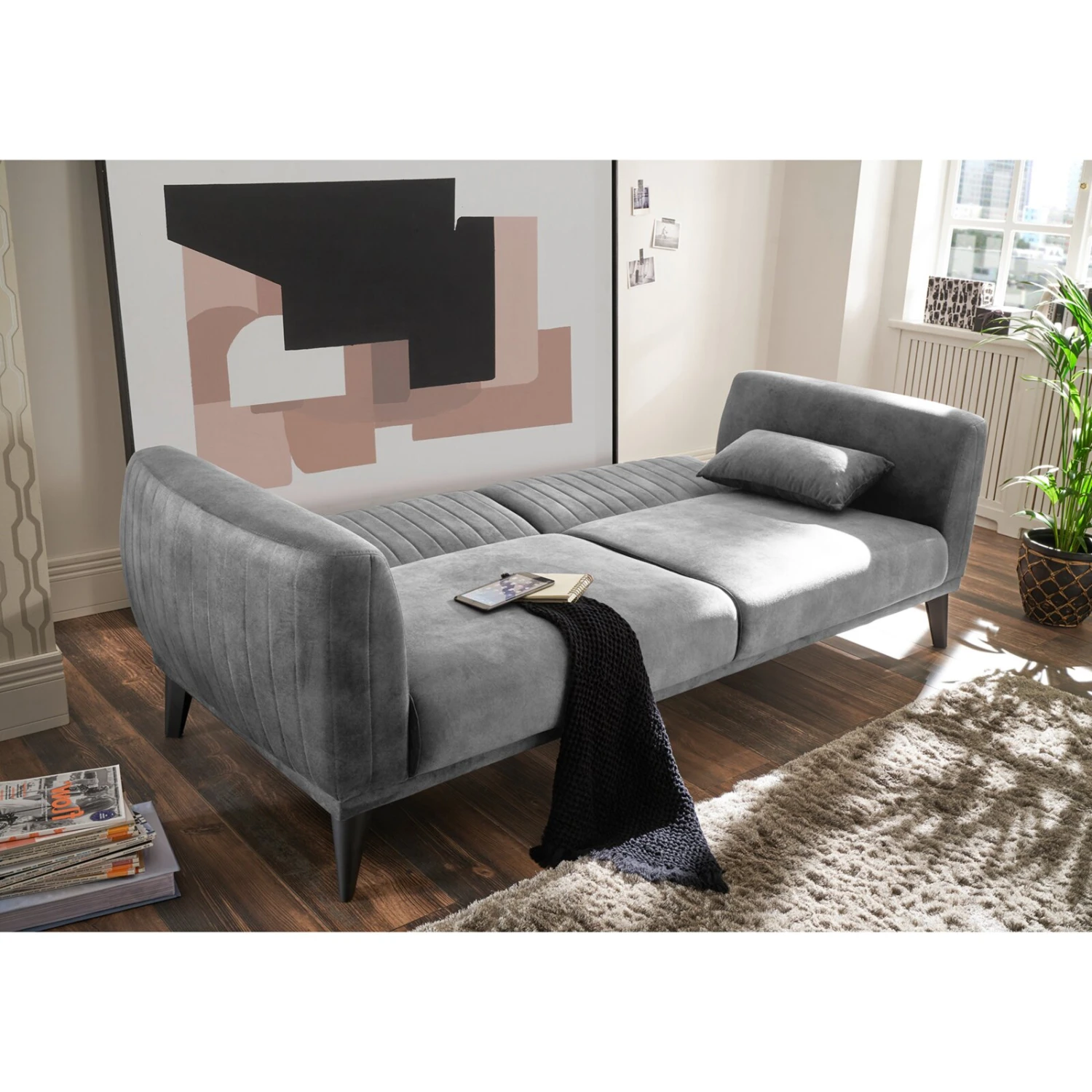 Dieses Funktionssofa bietet neben einem modernen, grauen Design einen zweifach verstellbaren Rücken und somit eine Liegefläche. Zusätzlich sind passende Zierkissen im Lieferumfang enthalten. Der echt bezogene Rücken sowie die echt bezogene Liegefläche runden das Angebot stimmig ab.