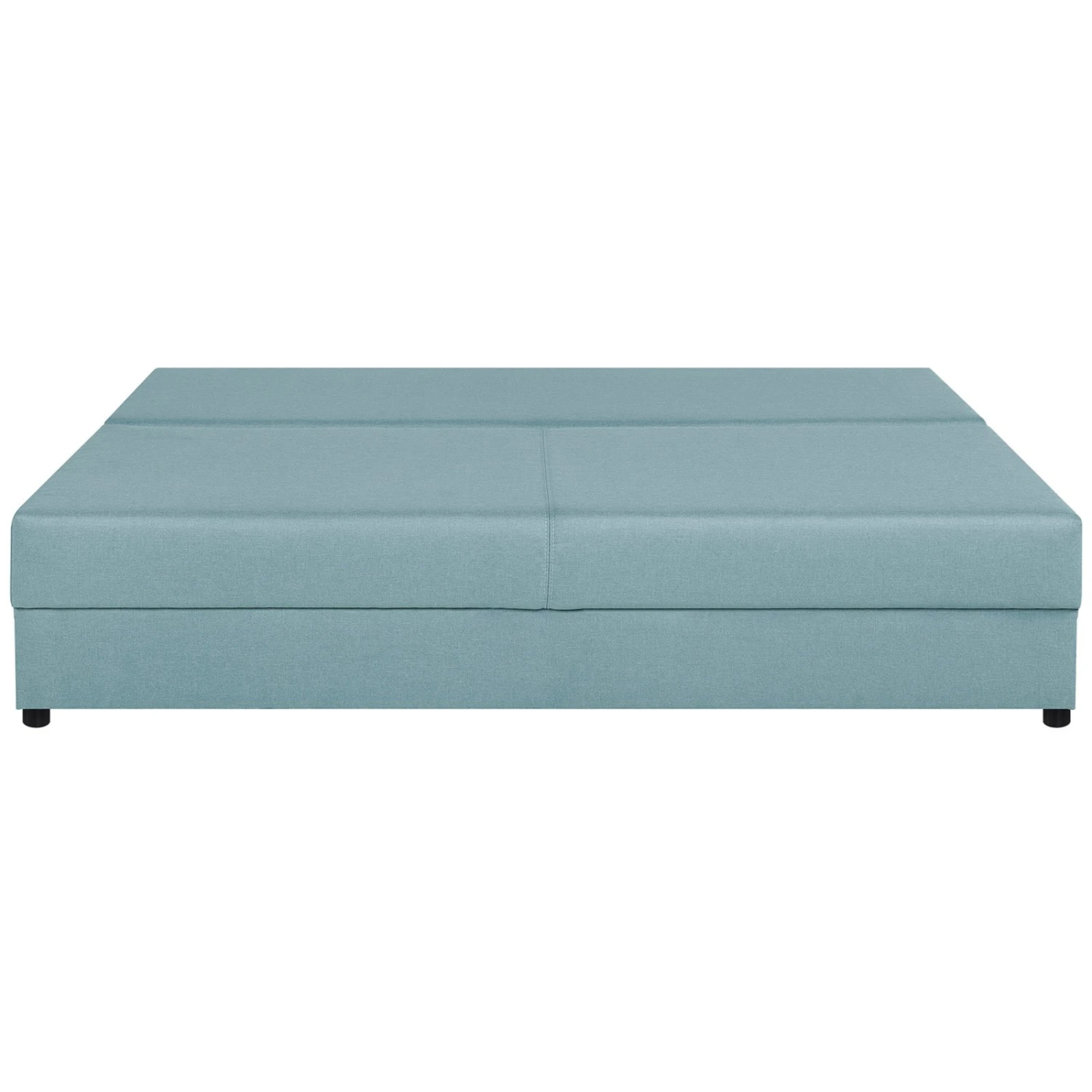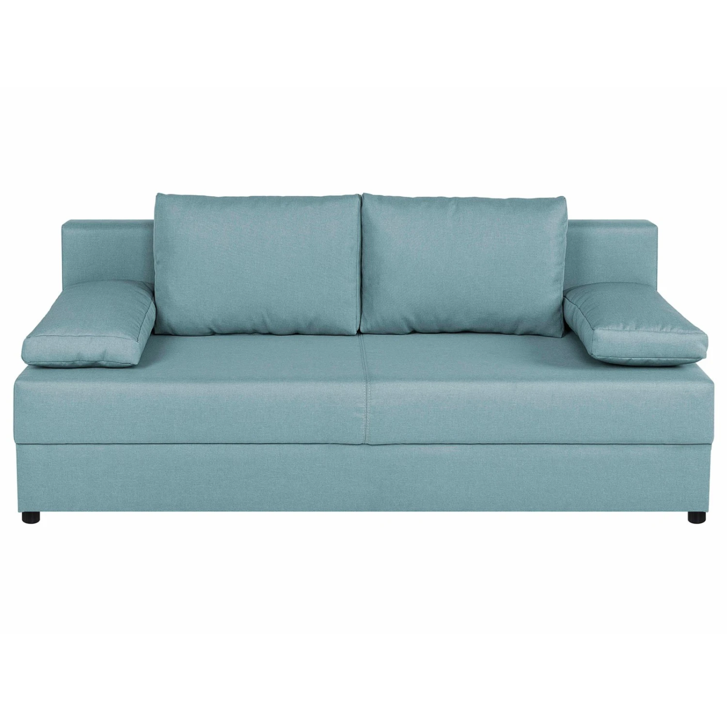 Das gemütliche Schlafsofa ist mit einem modernen Webstoffbezug in Mint versehen, der ein absoluter Hingucker in Ihrem Raum sein wird. Es ist mit einer komfortablen Polyurethan-Schaum-Polsterung ausgestattet, die über eine dauerhafte Elastizität und Flexibilität verfügt und für Gemütlichkeit sorgt. Mit wenigen Handgriffen erhalten Sie eine Liegefläche von etwa 120 x 190 cm, auf die Sie es sich gemütlich machen können oder Ihr gelegentlicher Übernachtungsgast. Im integrierten Staukasten können Kissen und Decken untergebracht werden. Das tolle Design wird von den Kissen, die im Lieferumfang mit inbegriffen sind, stimmig abgerundet.