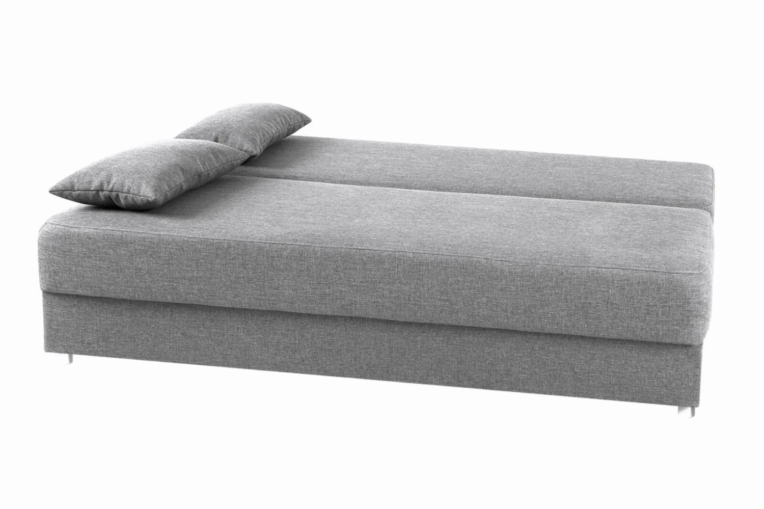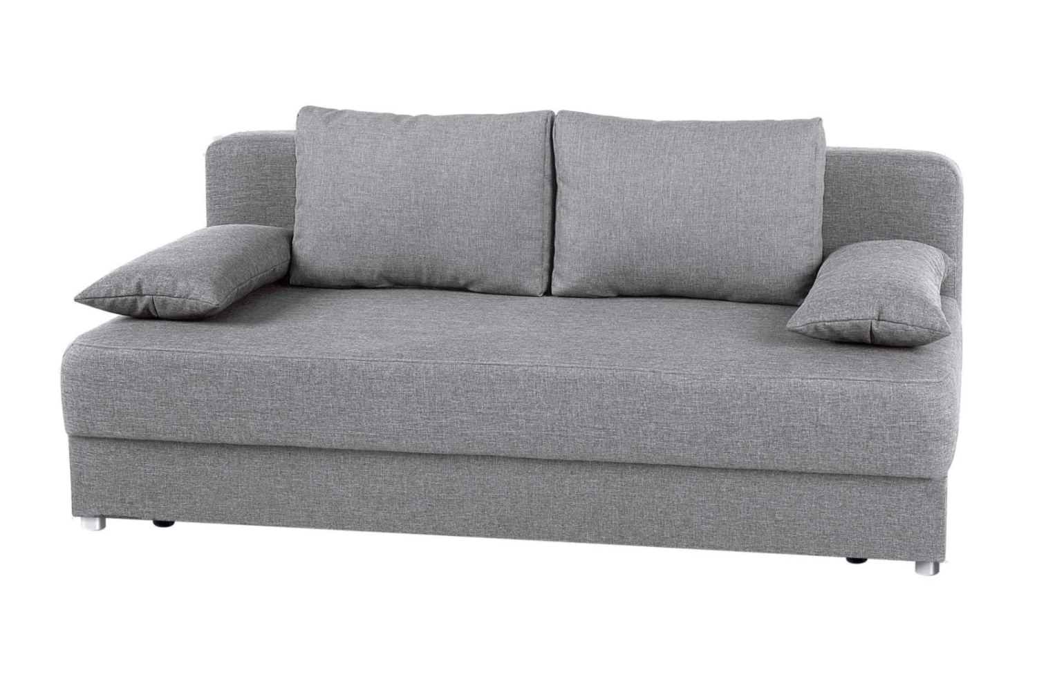 Dieses moderne 2-Sitzer Schlafsofa ist mit feinem, silberfarbenem Webstoff bezogen. Die Rücken- und Armlehnenkissen sind abnehmbar und mit wenigen Handgriffen können Sie das Sofa in ein bequemes Gästebett mit einer großzügigen Liegefläche verwandeln. Verstauen Sie dafür die Bettwäsche ganz einfach im praktischen Staukasten. Für angenehmen Sitz- und Liegekomfort sorgt die Polsterung aus Polyätherschaum mit Bonell-Federkern. Die beiden vorderen Standfüße sind verchromt und runden die moderne Optik dieses fabelhaften Sofas stimmig ab.