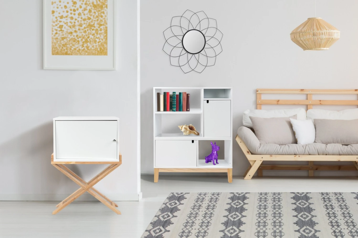 Dieser Beistelltisch ist vielseitig und individuell einsetzbar. Ob als Nachttisch oder dekorativer Tisch im Wohnzimmer oder der Diele. Der Clou – im Inneren des Tisches ist Stauraum versteckt. Öffnen Sie einfach die Drehtür und profitieren Sie von der versteckten Ablagefläche, schaffen Ordnung und platzieren zusätzlich Dekorationen.