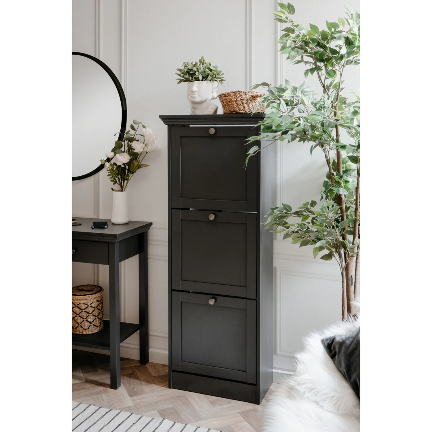 Für Ihren im Landhaus-Stil eingerichteten Flur ist der Schuhkipper VERA perfekt! Hinter drei Klappen finden Sie genügend Stauraum für Ihre Schuhe.