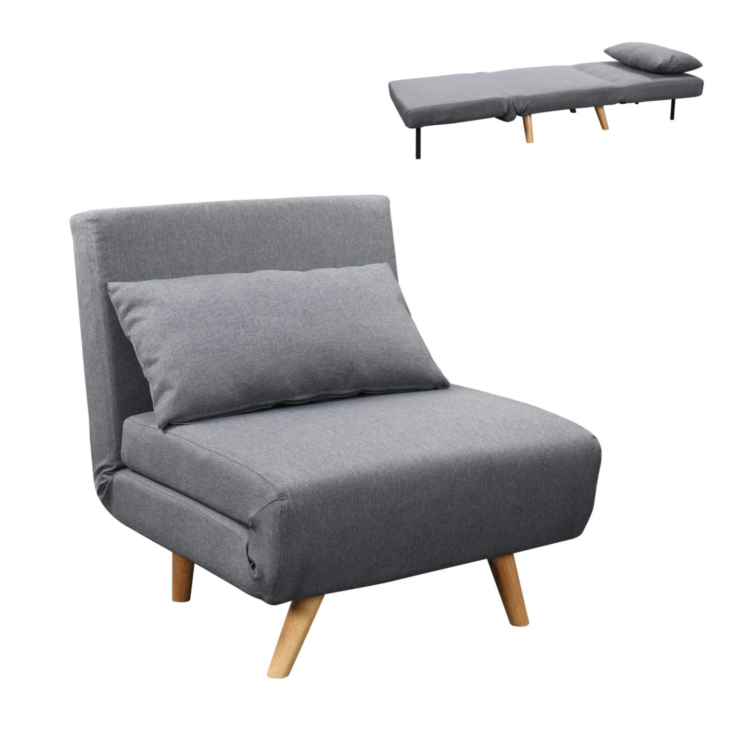 Stilvoller Sessel mit praktischer Liegefunktion. Im Handumdrehen können Sie so ihren Gästen eine gelegentliche Übernachtungsmöglichkeit anbieten. Auf der Schaum-Polsterung lässt es sich bequem Sitzen und Liegen. Der Bezug ist aus Webstoff und durch die Farbgebung lässt er sich mit allen Einrichtungsstilen kombinieren.