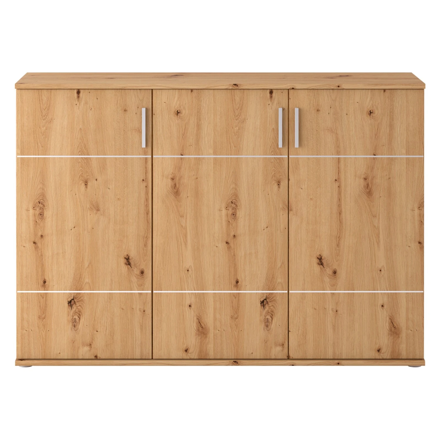 Zeitloses Design und viel Stauraum bietet Ihnen das Sideboard in Artisan Eiche-Dekor.Es ist mit drei Türen und zwei Einlegeböden ausgestattet. Egal ob in der Diele, dem Wohn- oder Schlafzimmer – dieses Sideboard bietet Ihnen so viele Möglichkeiten und überzeugt immer mit einer wohnlichen Optik und großzügigem Platzangebot.