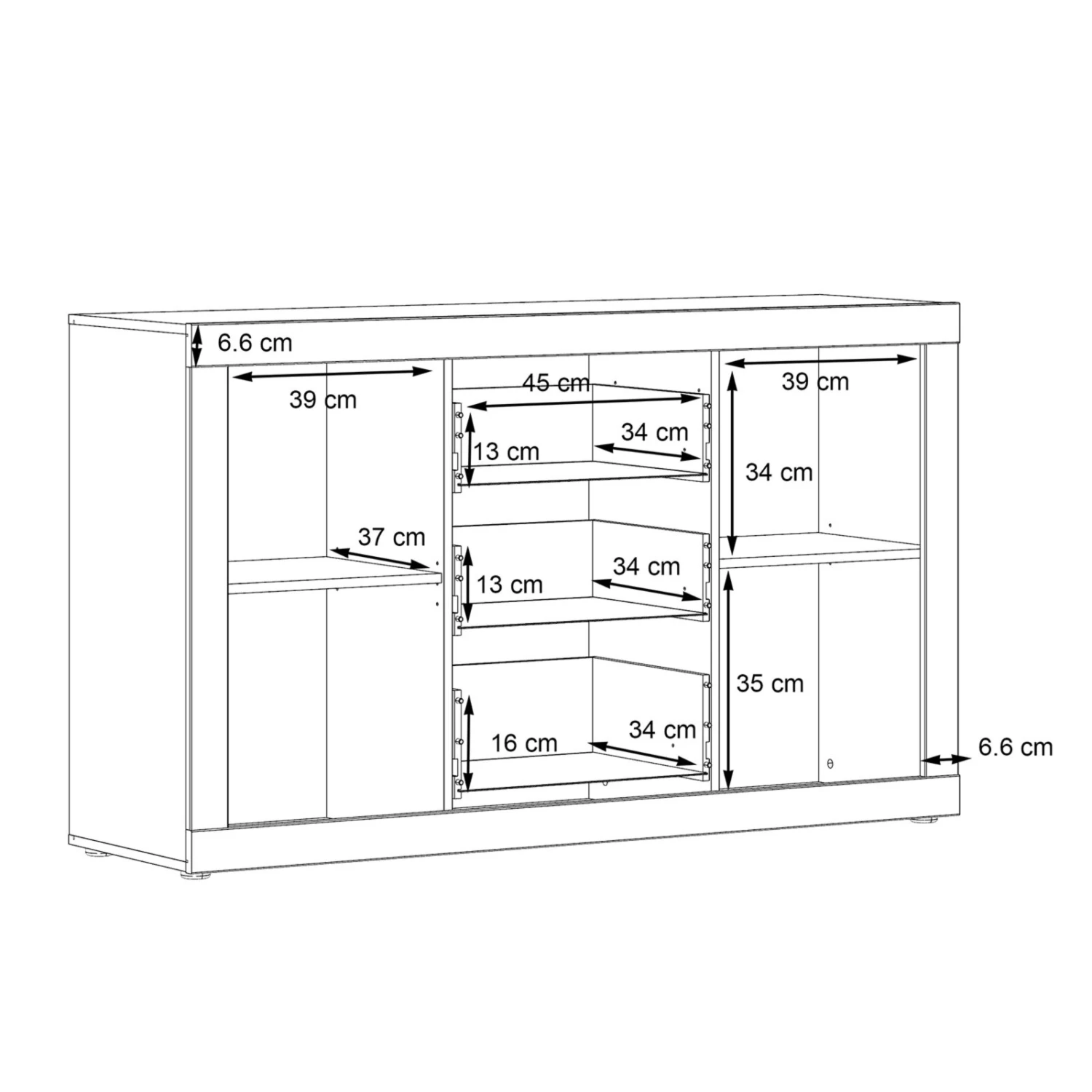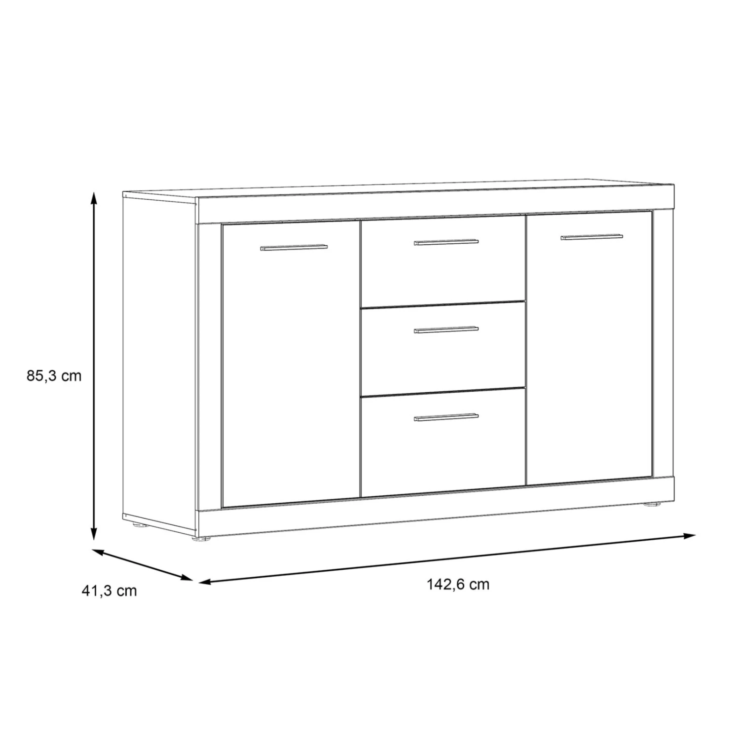 Das Sideboard erweitert Ihren Stauraum um ein vielfaches. Dieses etwa 143 cm breite Sideboard bietet zwei Türen und drei Schubkästen. Auf der Oberfläche lassen sich beispielsweise Dekoartikel platzieren.