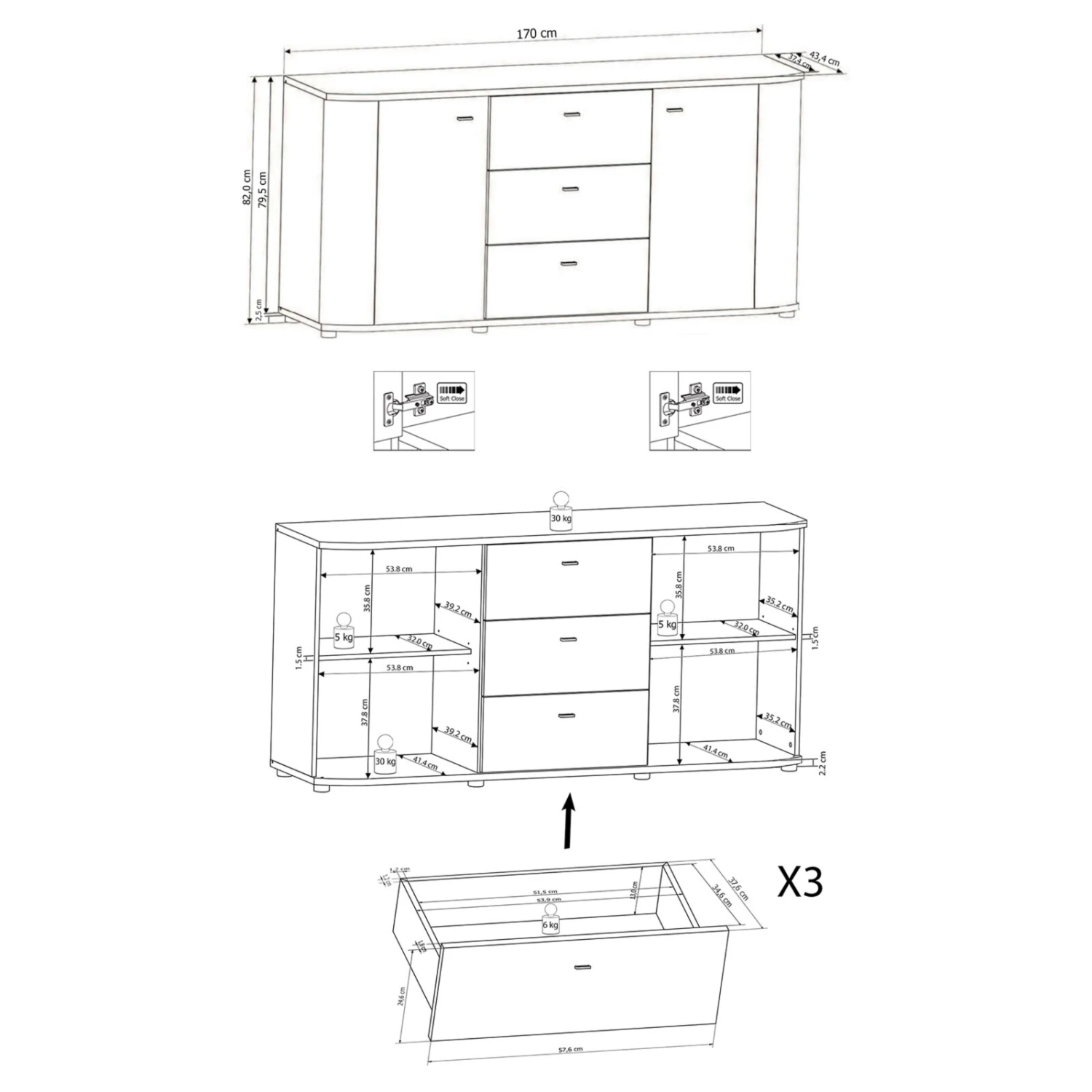 - Anzahl Schubladen: 3
