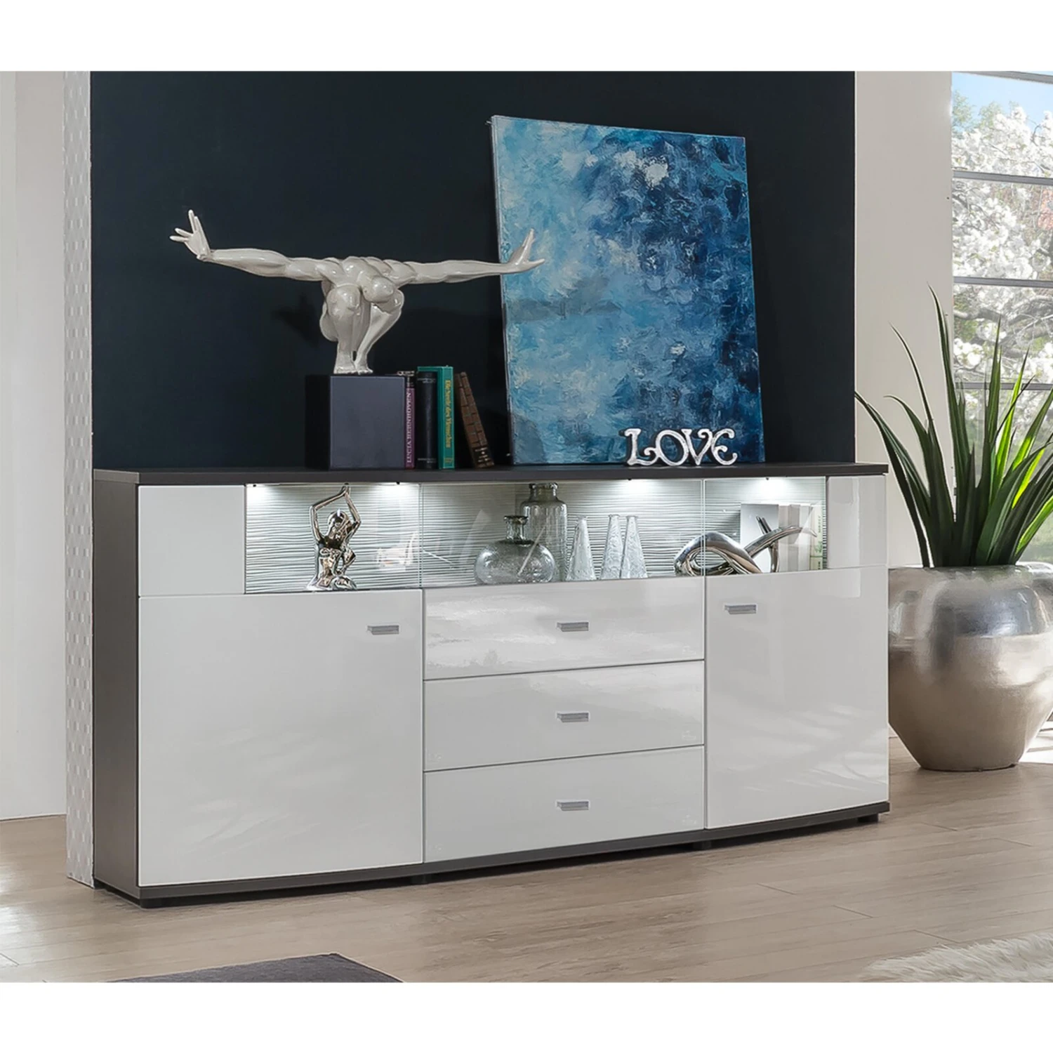 Sideboard GATE – weiß Hochglanz – anthrazit – 160 cm