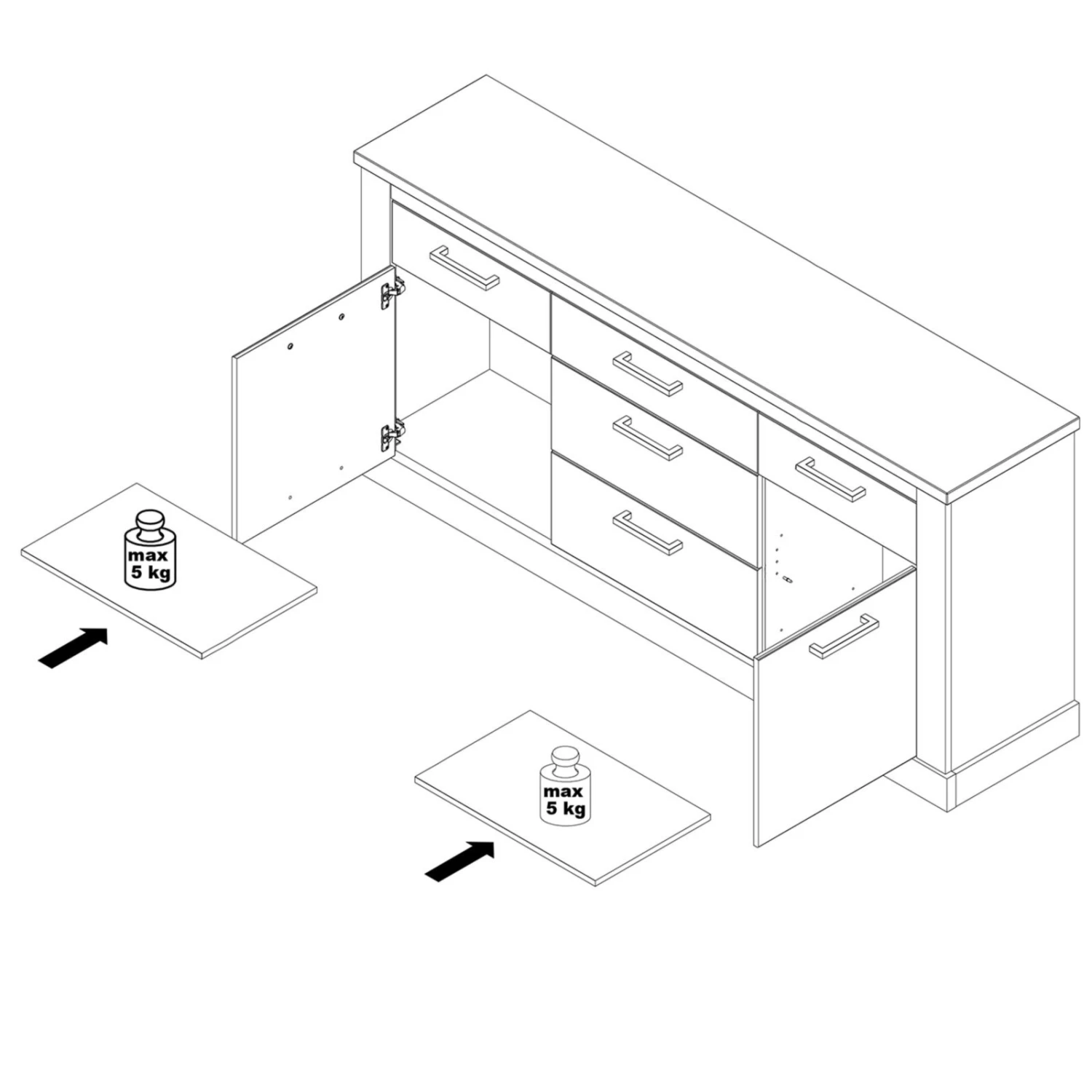 - 5 Schubkästen