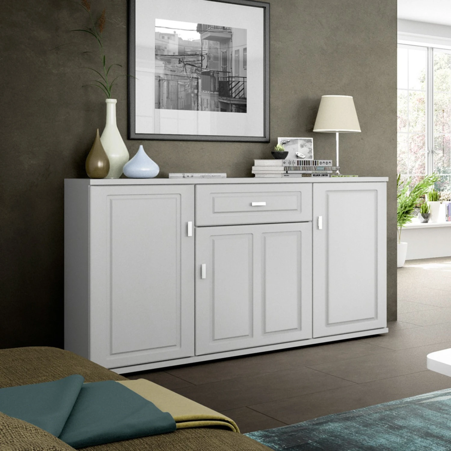 Das Sideboard lässt sich je nach Bedarf zu Ihrem individuellen Wohnstil zusammenstellen. Jede Menge Stauraum bietet es ebenfalls. Die eingesetzten Ganzmetallscharniere sind 3-dimensional verstellbar und die Türen werden mittels Clipmontage angebracht. Außerdem sind die Scharniere mit Türdämpfern versehen. Alle Schubkästen sind mit einem Komfortauszug ausgestattet. Diese besitzen verdeckte Führungsschienen inklusive Selbsteinzug und Softstopp bei einer Tragelast von bis zu 30 kg.