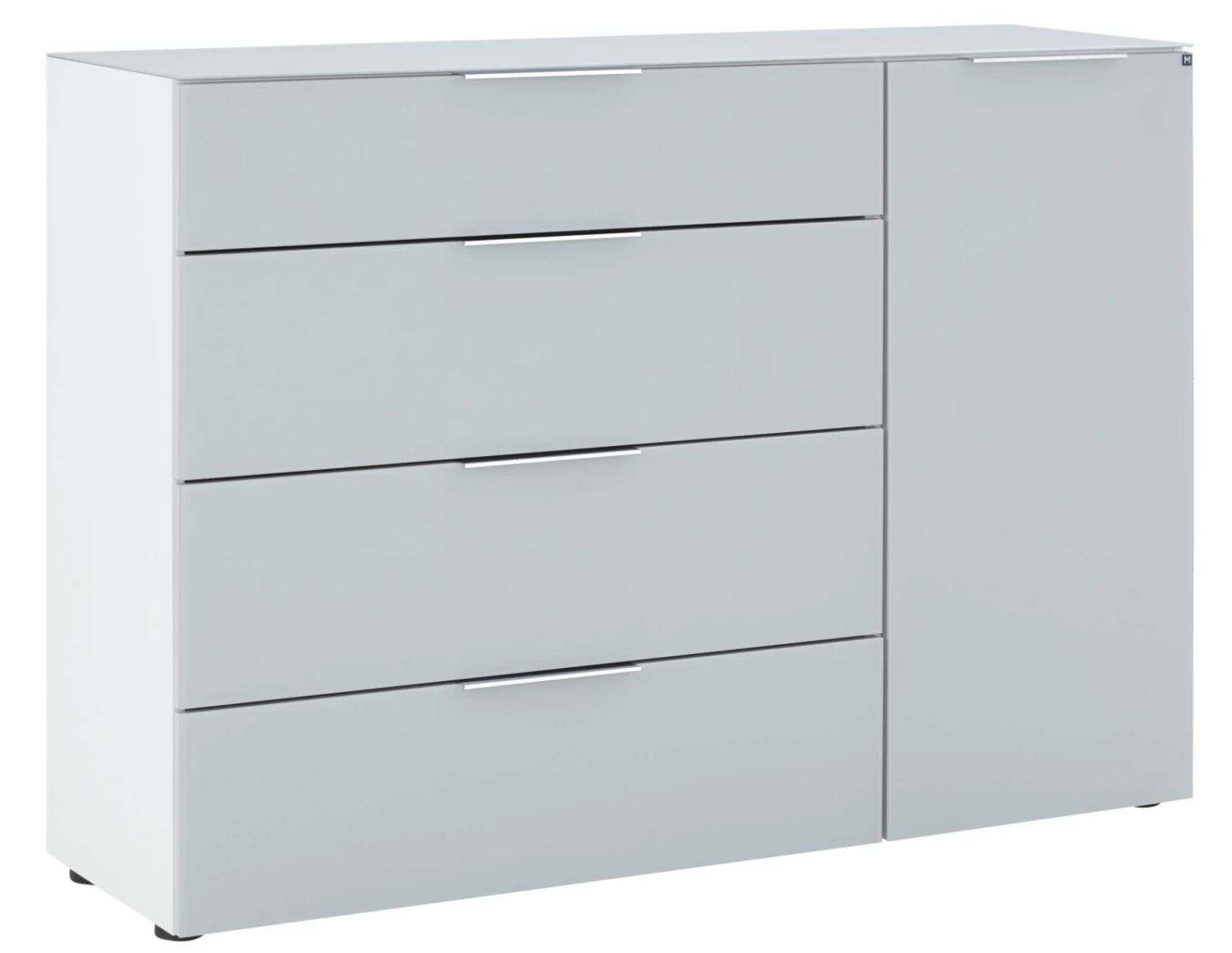Sideboard – weiß – seidengrau matt – Glas – 135 cm