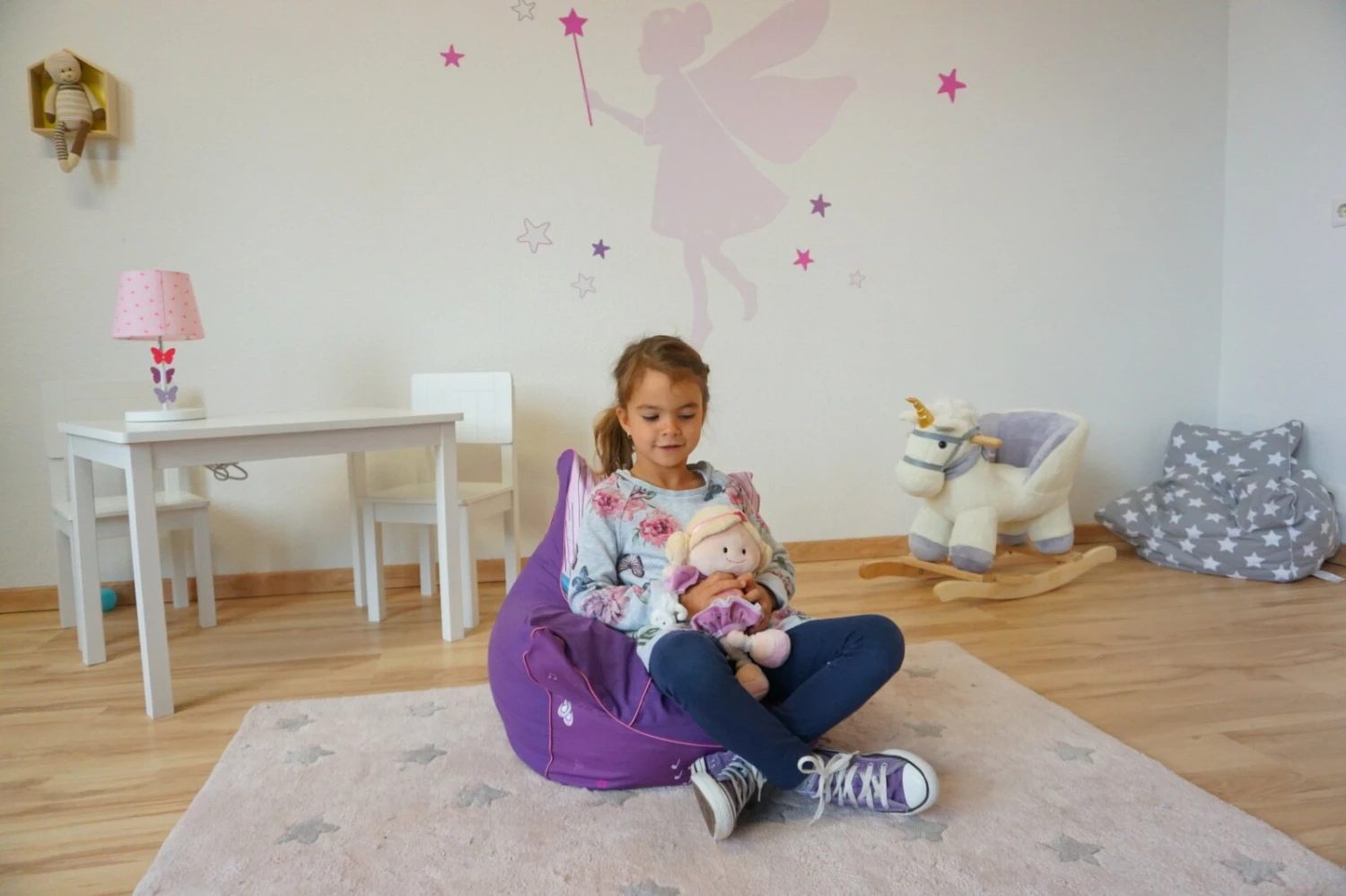 Gemütlicher Sitzsack, der Dank der Form eine gute Sitzposition unterstützt, da der Sack im Rückenbereich wie eine Lehne geformt ist. Er wird als gemütlicher Begleiter beim Lesen, Kuscheln oder Entspannen genutzt werden. Dabei sieht er auch sehr gut aus. In einem kräftigen Lila mit der Ballerina MINICLARA und einer Katze darauf wird er in jedes Mädchenzimmer passen. Als Besonderheit ist der Bezug waschbar, so dass auch mal ein Schokokeks dort gegessen werden kann.