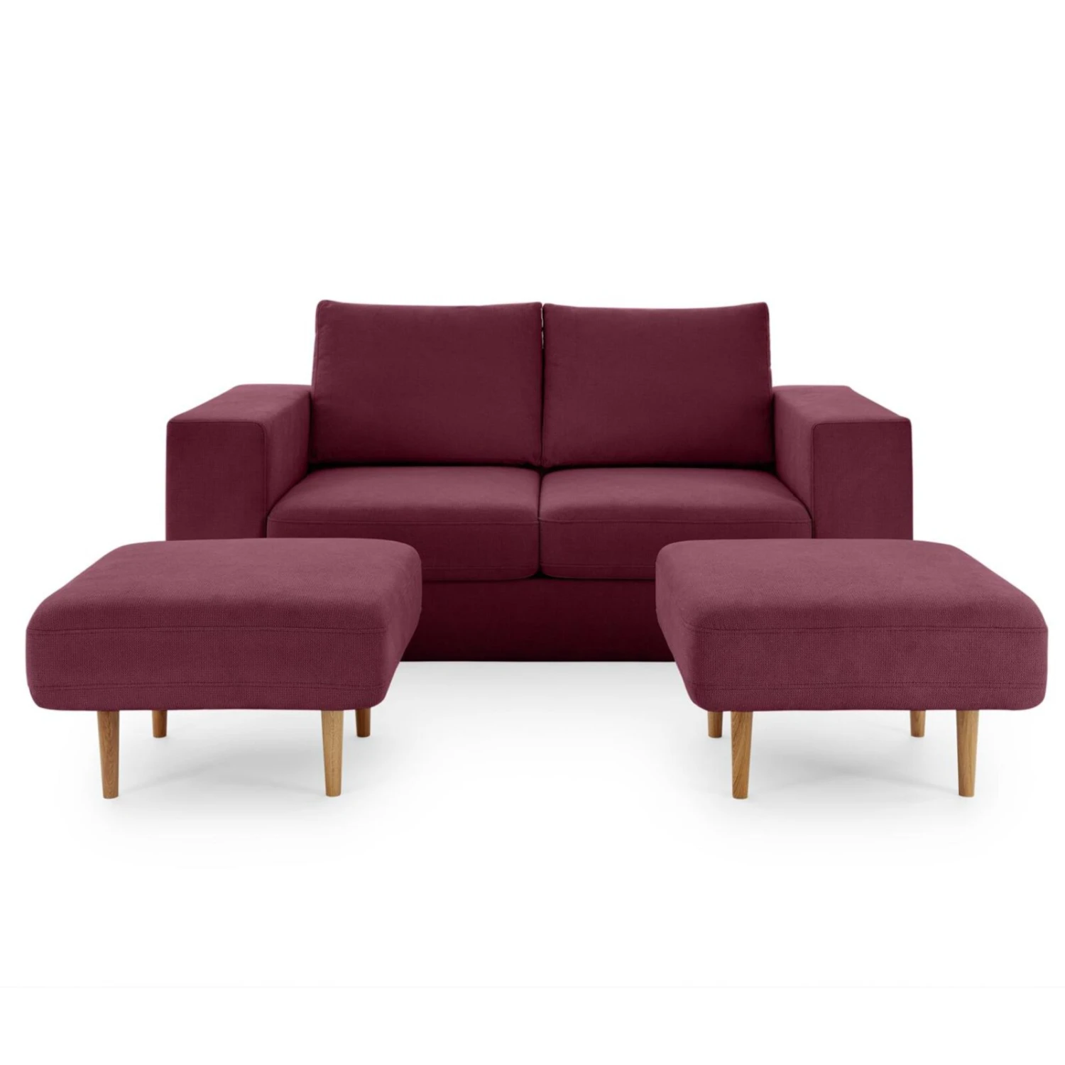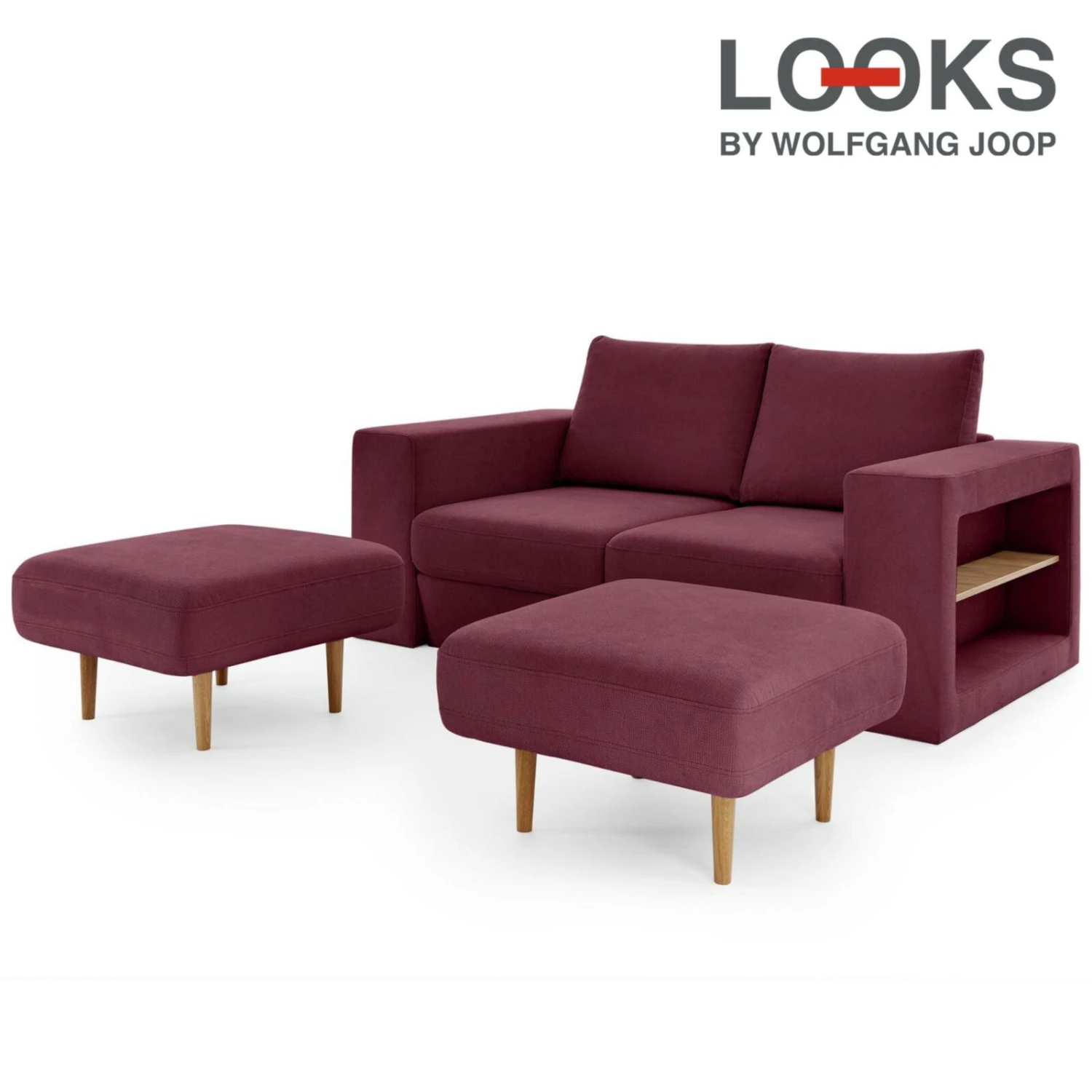 Sofa mit 2 Hockern – LOOKS by Wolfgang Joop – beere – Armlehne mit Regal – 172 cm