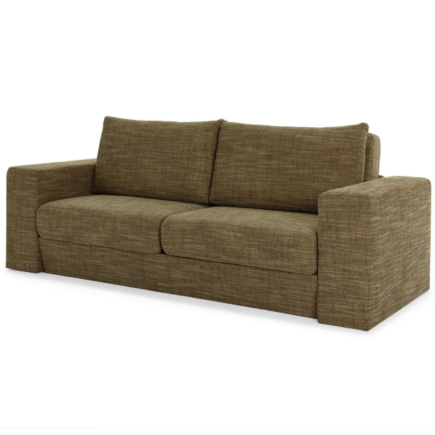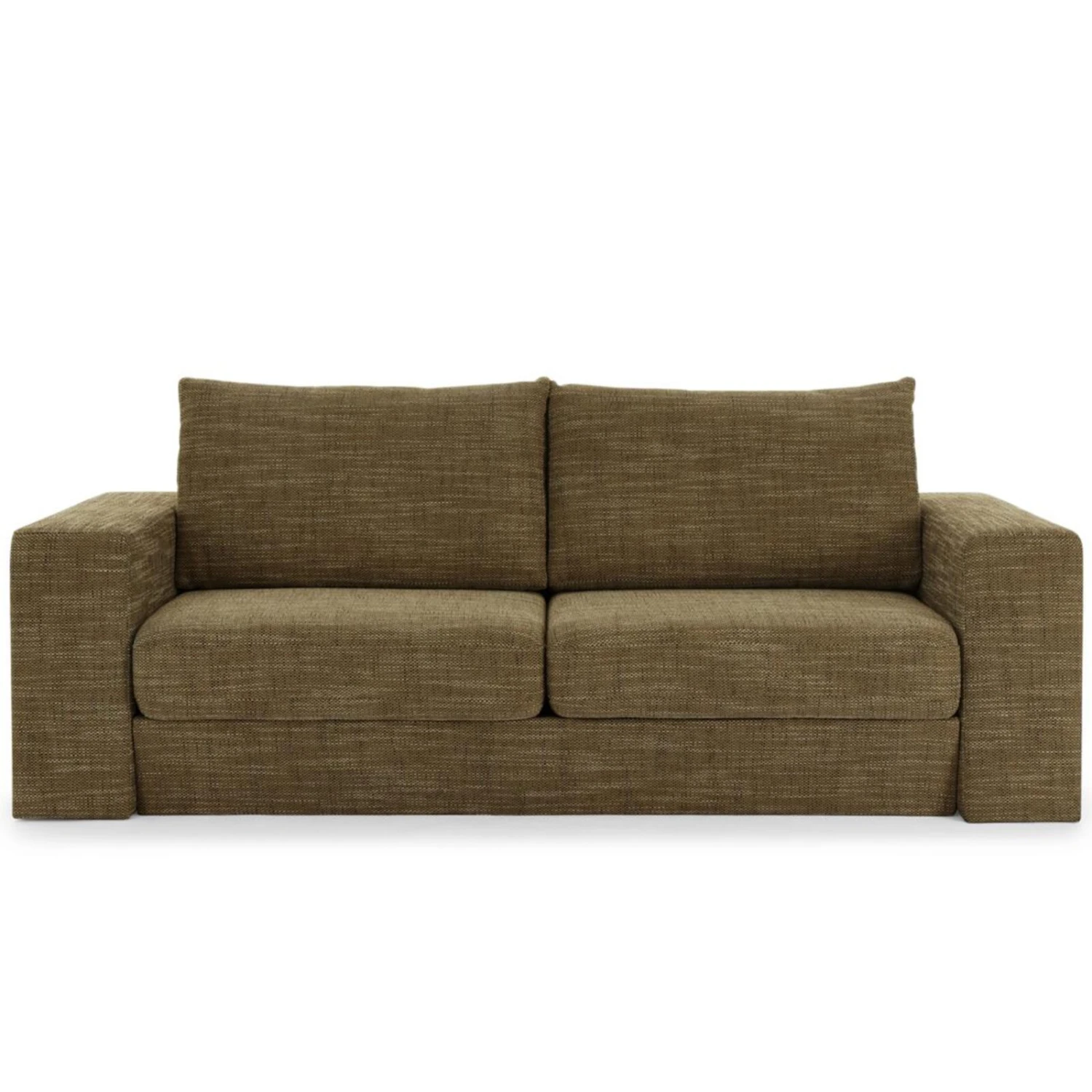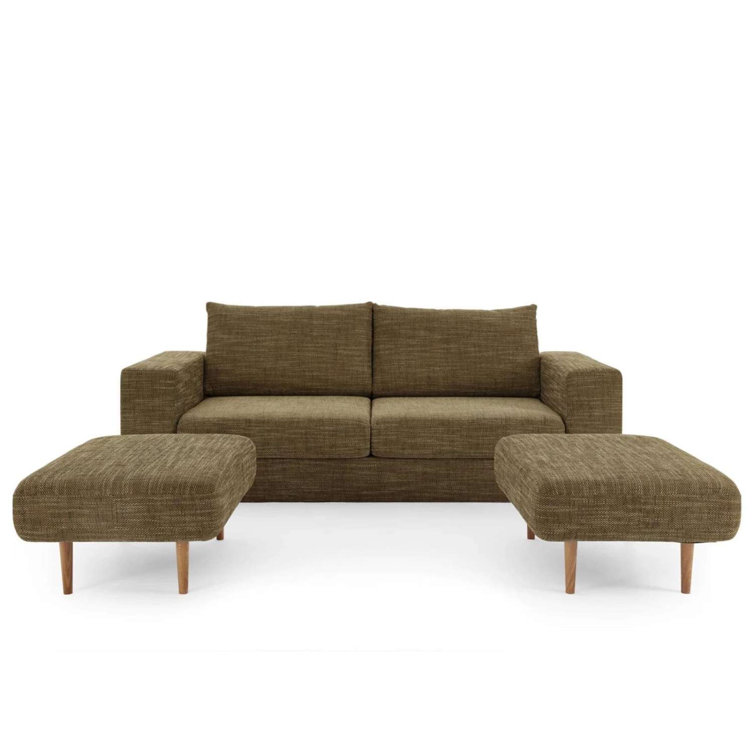 Dieses Sofa weiß in Sachen Variabilität und Komfort zu überzeugen. Mit den zugehörigen Hockern können Sie die Couch für verschiedene Anlässe im Handumdrehen umgestalten. Außerdem ist der Rücken mit dem Originalstoff bezogen, weshalb das Sofa überall im Raum eine gute Figur macht. Der gute Sitzkomfort wird durch den Webstoffbezug und die Polsterung aus Polyätherschaum gewährleistet.