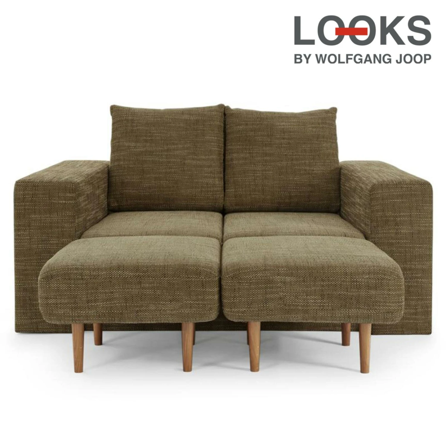 Sofa mit 2 Hockern – LOOKS by Wolfgang Joop – braun – Armlehne mit Regal – 172 cm