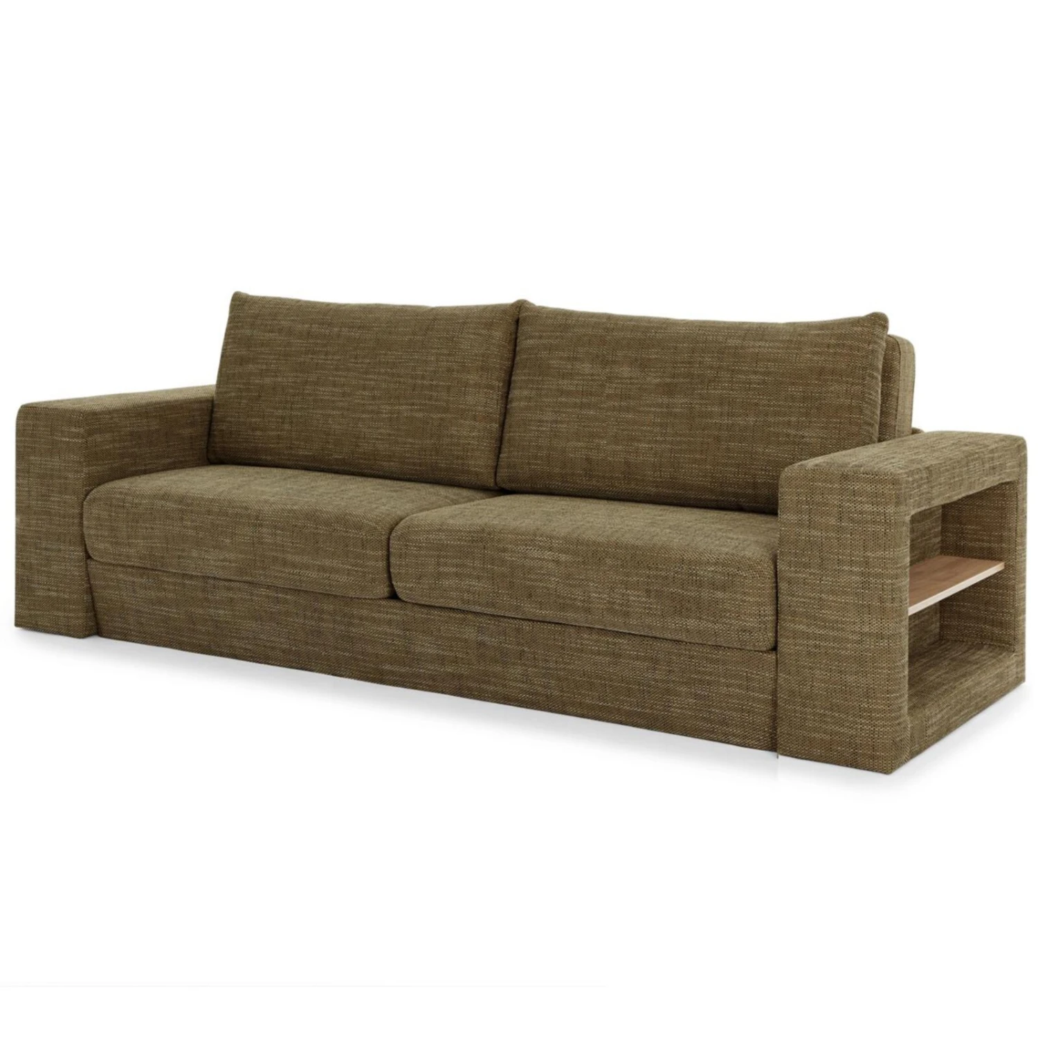 Dieses Sofa vereint das Praktische mit dem Komfortablen. Die Polsterung aus Polyätherschaum und die Wellenfederung sorgen dabei für einen guten Sitzkomfort. Mit den zugehörigen Hockern können Sie die Sitzfläche zu einem Longchair oder einer Liegefläche erweitern. Die Regale in den Armlehnen sind ein idealer Platz, um kleinere Utensilien zu verstauen.