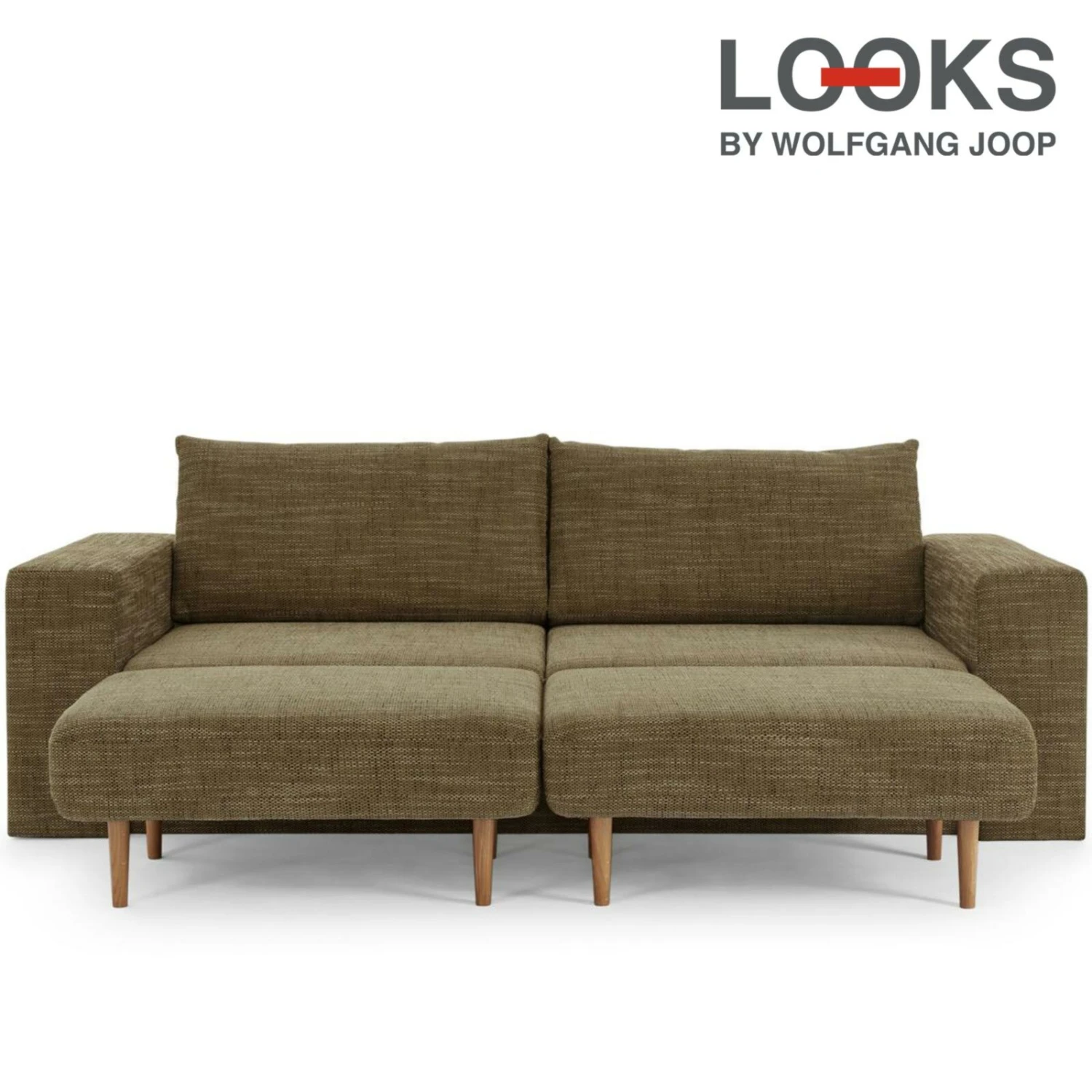 Sofa mit 2 Hockern – LOOKS by Wolfgang Joop – braun – Armlehne mit Regal – 252 cm