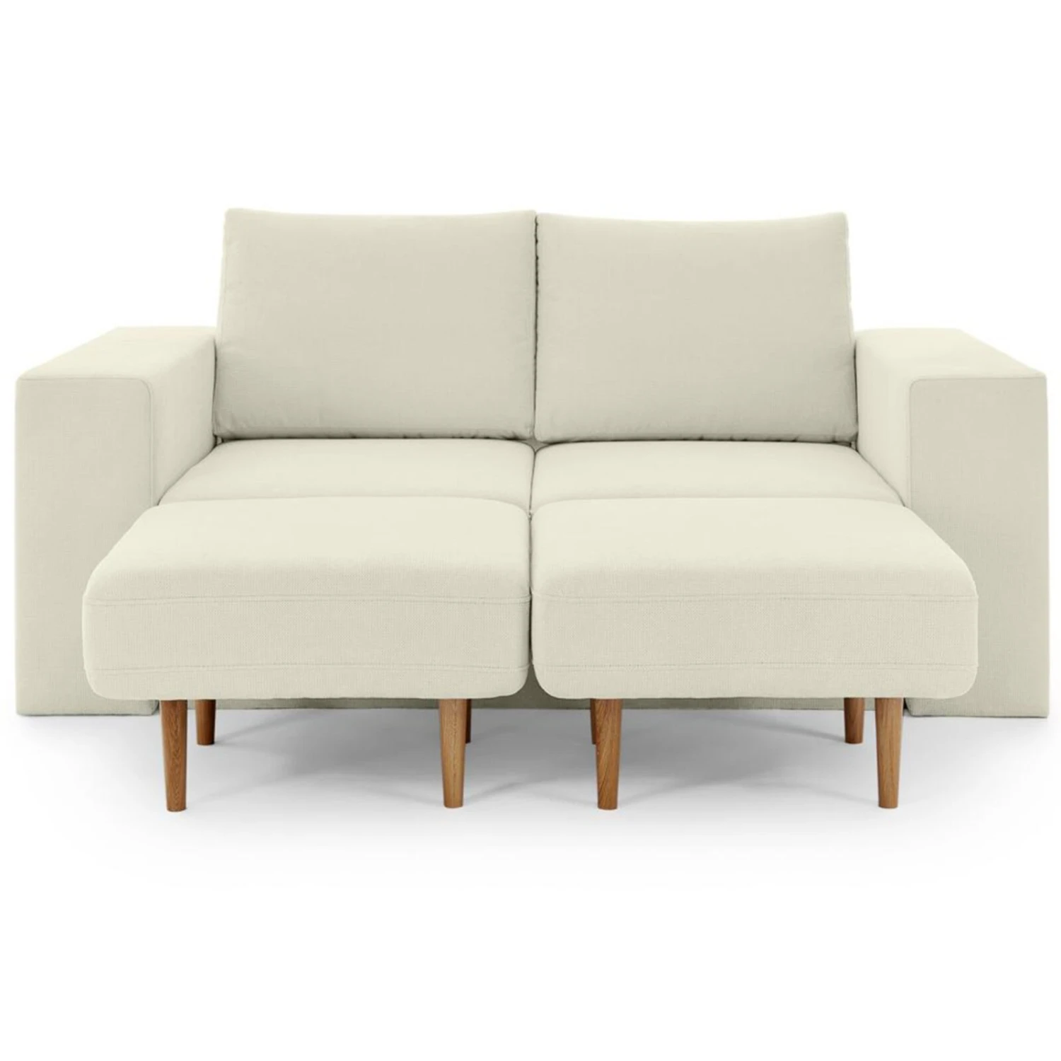 Das Einzelsofa mit zwei dazugehörigen Hockern überzeugt mit seinen verschiedenen Variationsmöglichkeiten. So können Sie es mit Hilfe der Hocker je nach Bedarf mit wenigen Handgriffen anders gestalten. Dank des formstabilen Polyätherschaums und der Wellenfederung bietet es zudem einen großartigen Sitzkomfort. Dank des mit dem Originalstoff bezogenen Rückens, können Sie das Sofa problemlos überall im Raum platzieren.