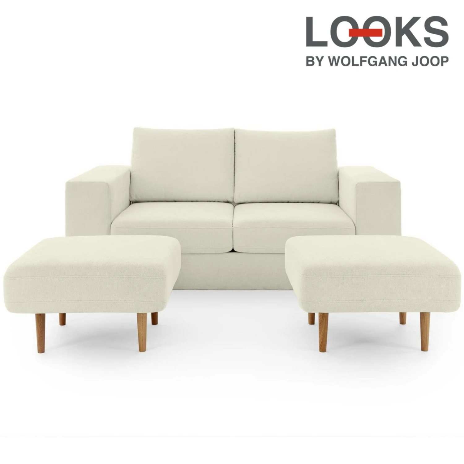 Sofa mit 2 Hockern – LOOKS by Wolfgang Joop – creme – 192 cm