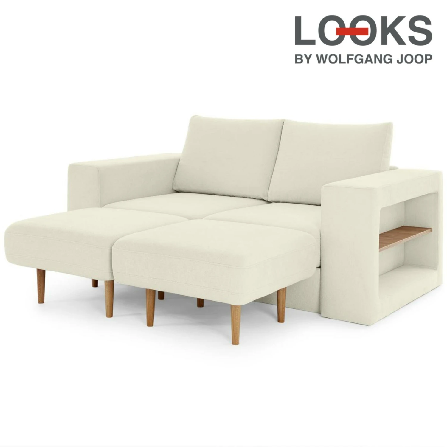 Sofa mit 2 Hockern – LOOKS by Wolfgang Joop – creme – Armlehne mit Regal – 192 cm