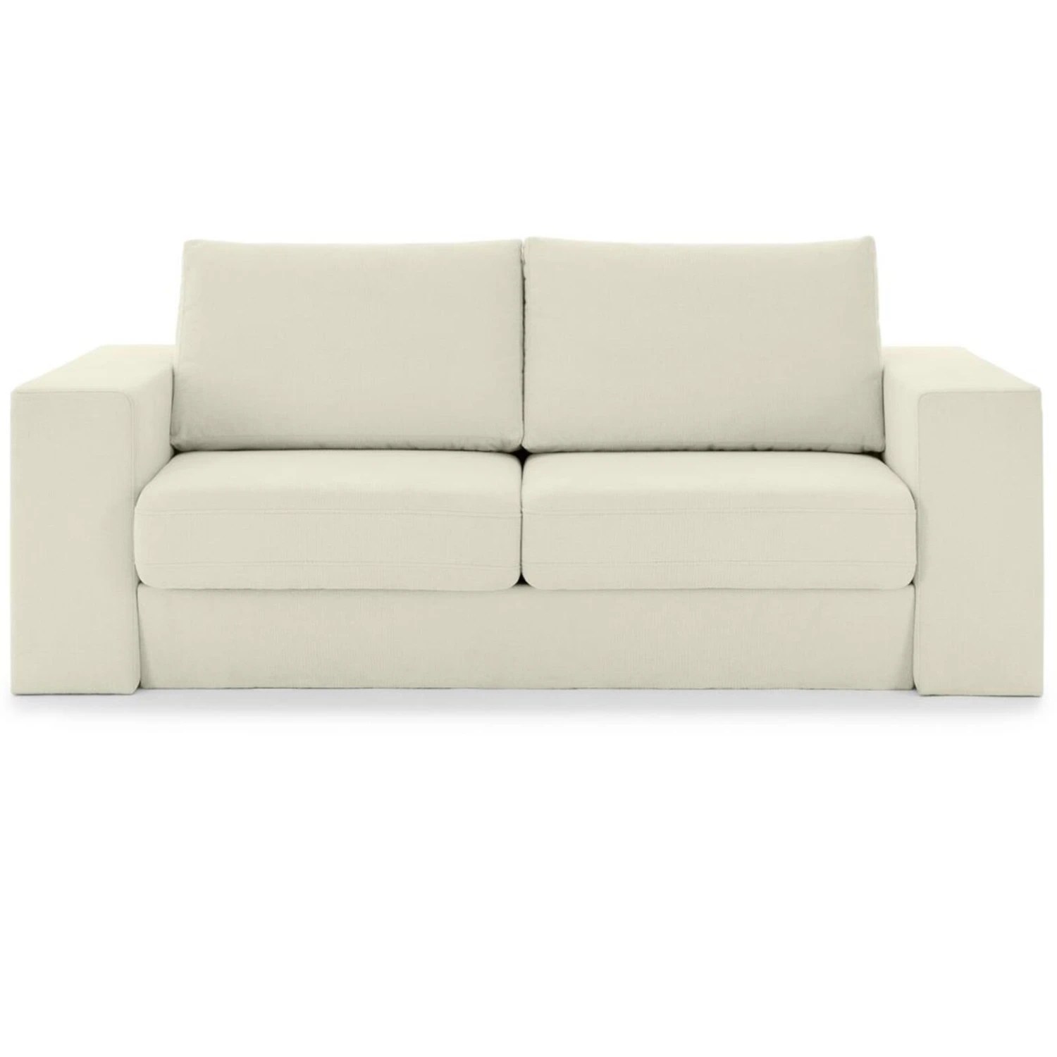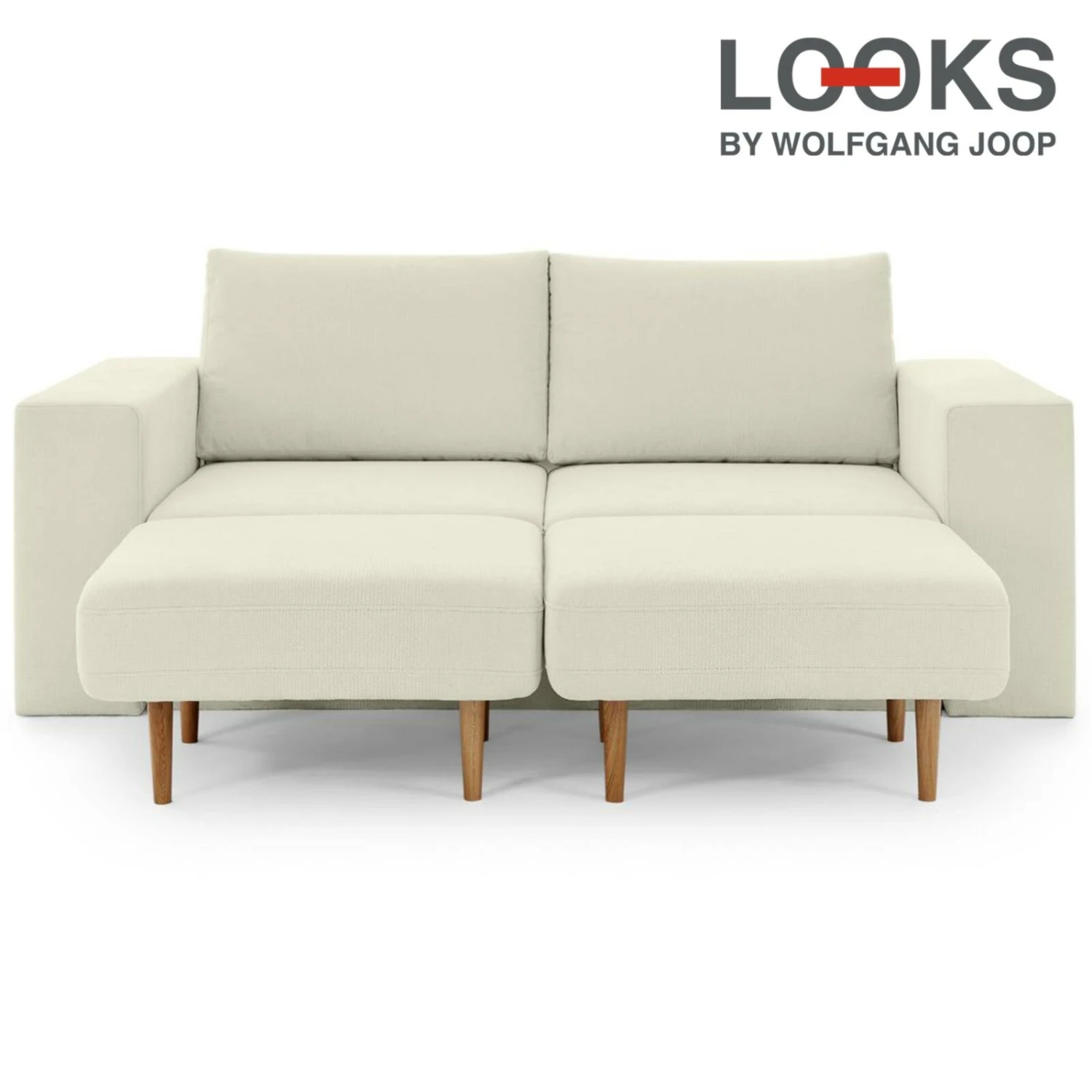 Sofa mit 2 Hockern – LOOKS by Wolfgang Joop – creme – Armlehne mit Regal – 212 cm