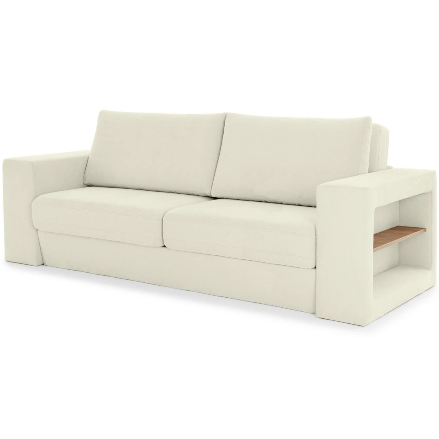 Sofa mit 2 Hockern – LOOKS by Wolfgang Joop – creme – Armlehne mit Regal – 232 cm