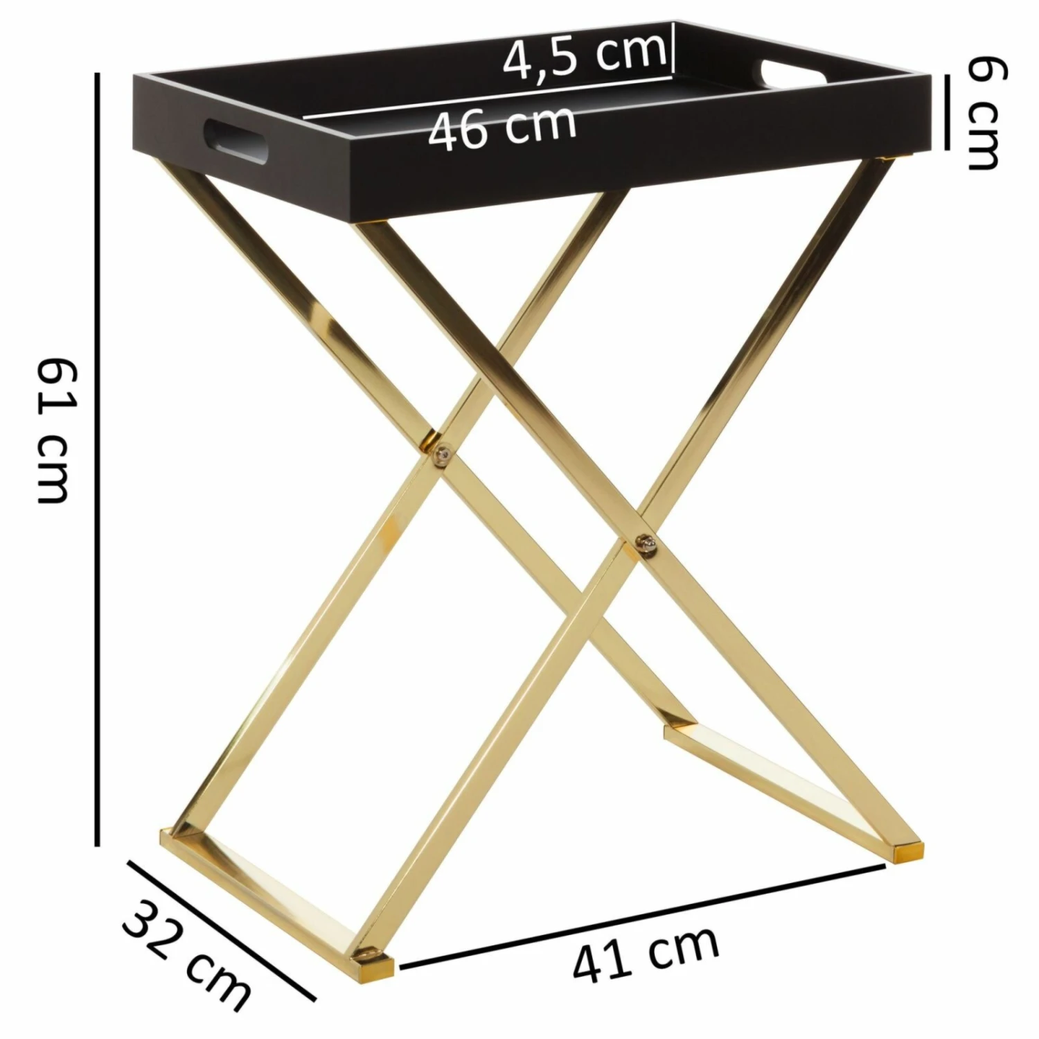 TV Beistelltisch – schwarz-gold – mit Tablett