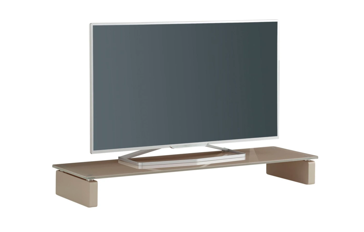 Dieses TV-Lowboard ist individuell einsetzbar. Das Board ist mit einer Glasplatte aus etwa 8 mm starkem ESG-Sicherheitsglas ausgestattet, welche mit bis zu 30 kg belastet werden kann. Die Füße sind aus sandfarben lackiertem Holz.