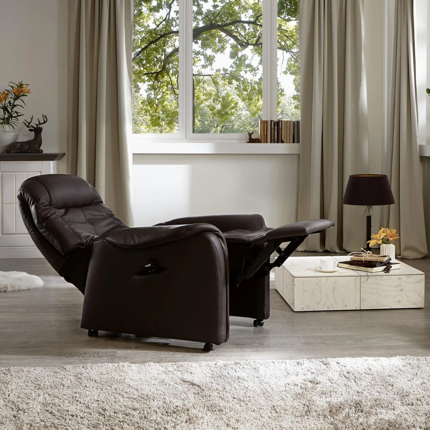 TV-Ledersessel – dunkelbraun – Funktionen mit Motor