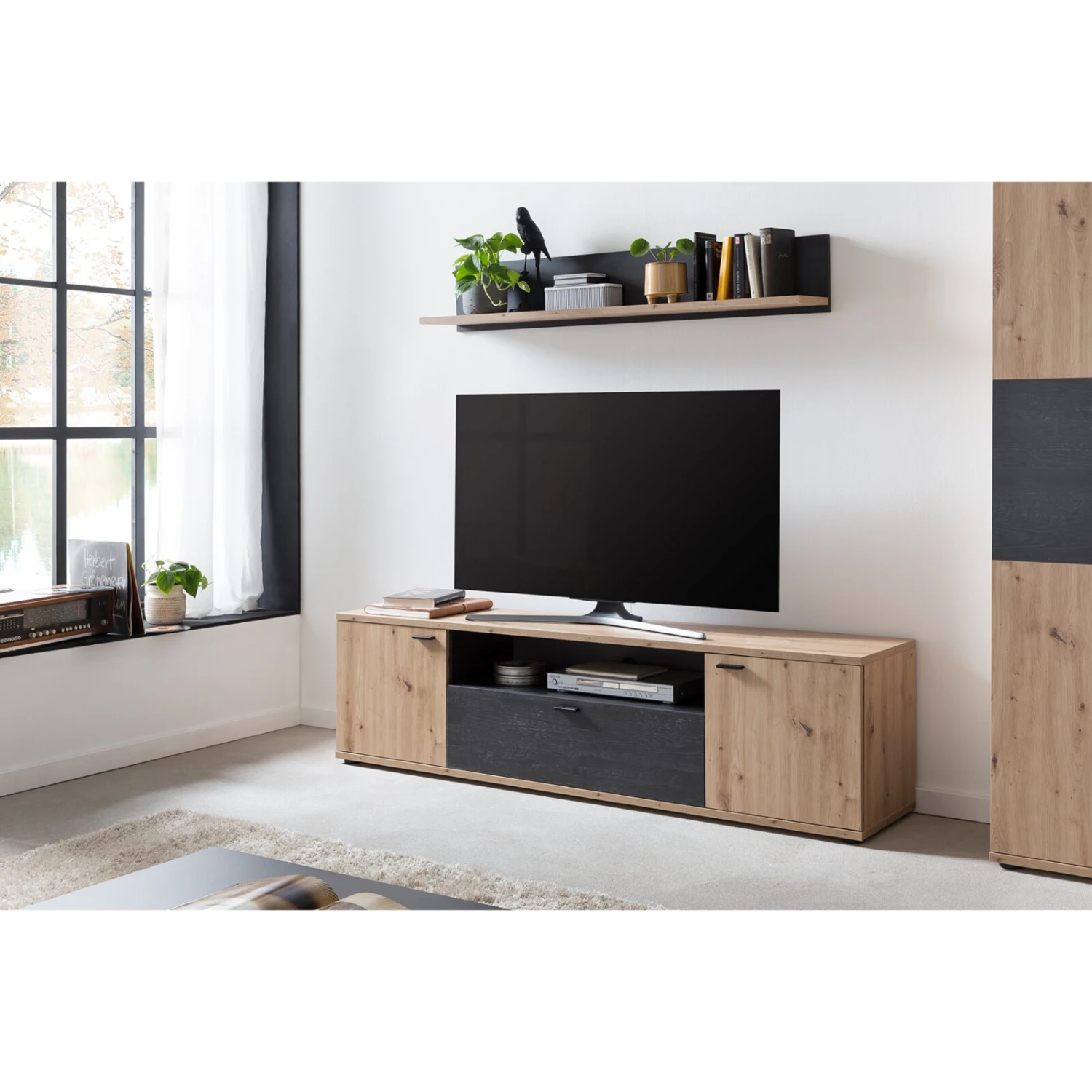 TV-Lowboard – Artisan Eiche-Burned Wood – 180 cm breit