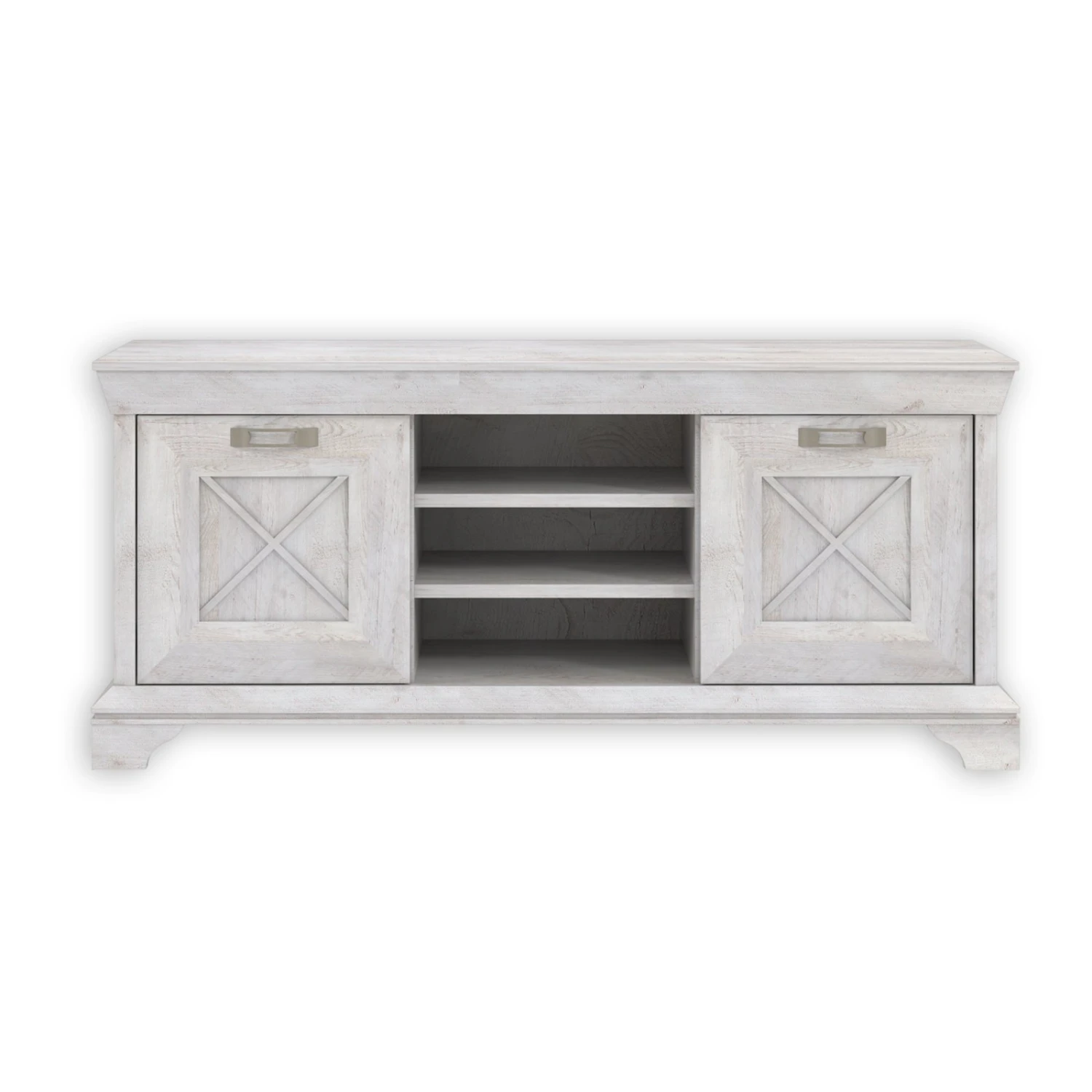 Das TV-Lowboard im weißen Pinien-Dekor bietet Ihnen viel Platz für Ihren Fernseher und Zubehör. Das Lowboard ist mit zwei Türen und drei offenen Fächern ausgestattet, so dass Sie DVD-Player, Receiver, Spielekonsole und vieles mehr bequem verstauen können.