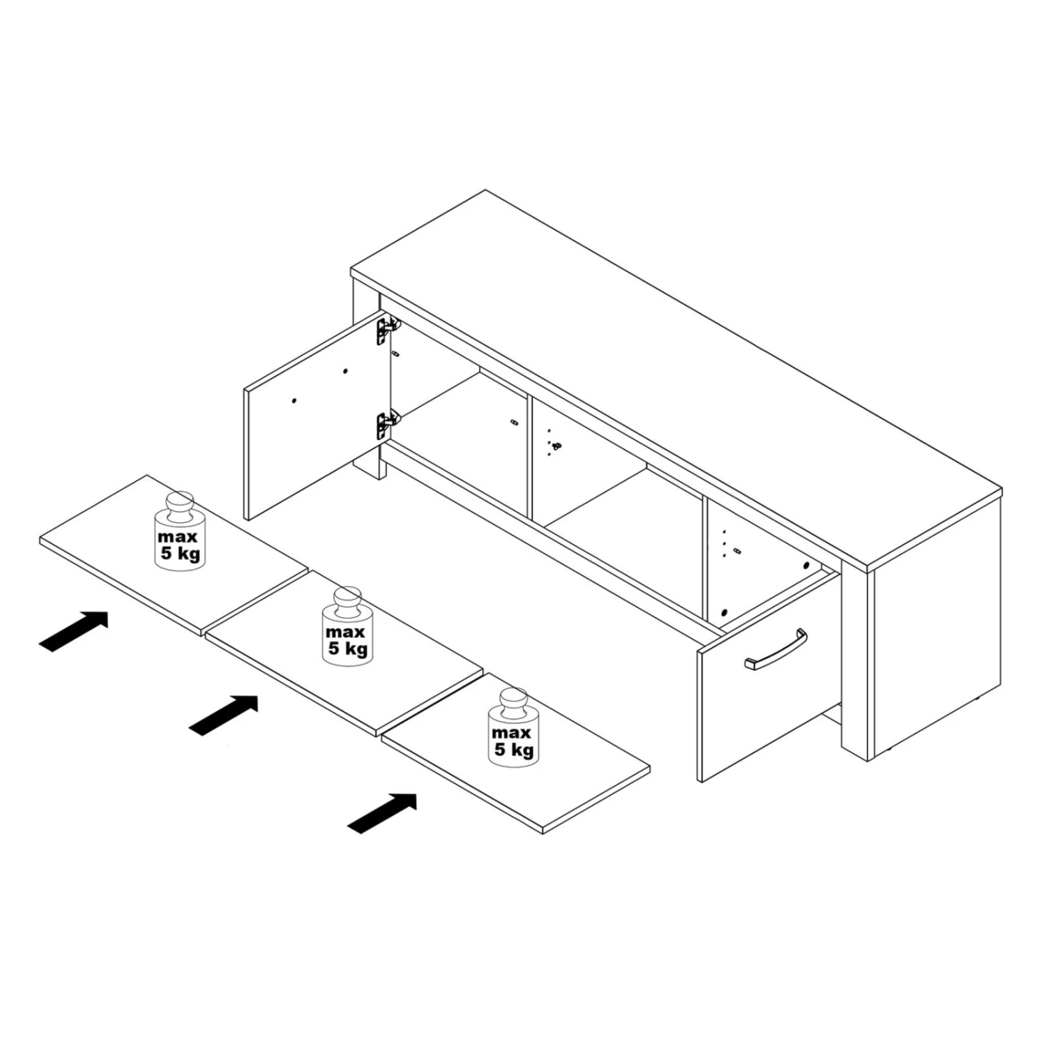 je Einlegeböden: ca. 5 kg - maximale Belastbarkeit: ca. 40 kg