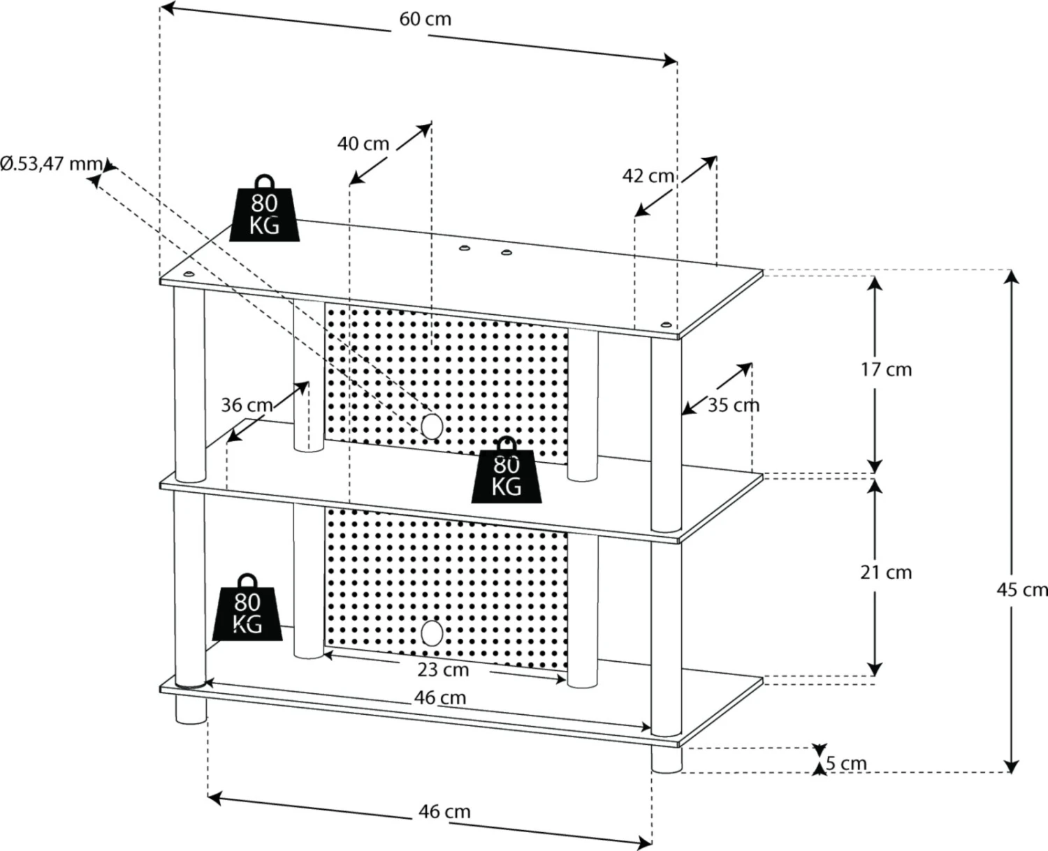 - Fachabstände: ca. 21 cm unten, ca. 17 cm oben