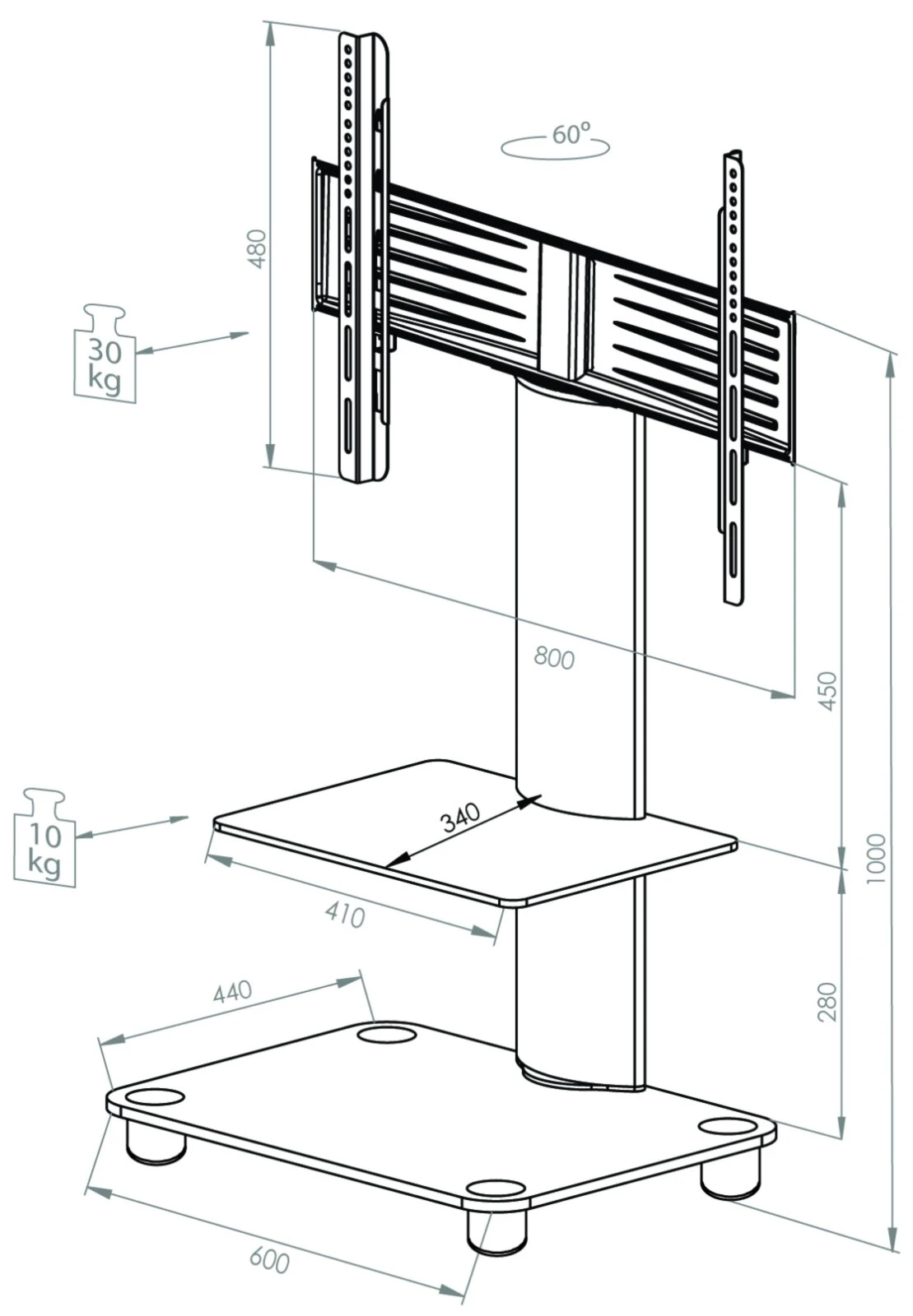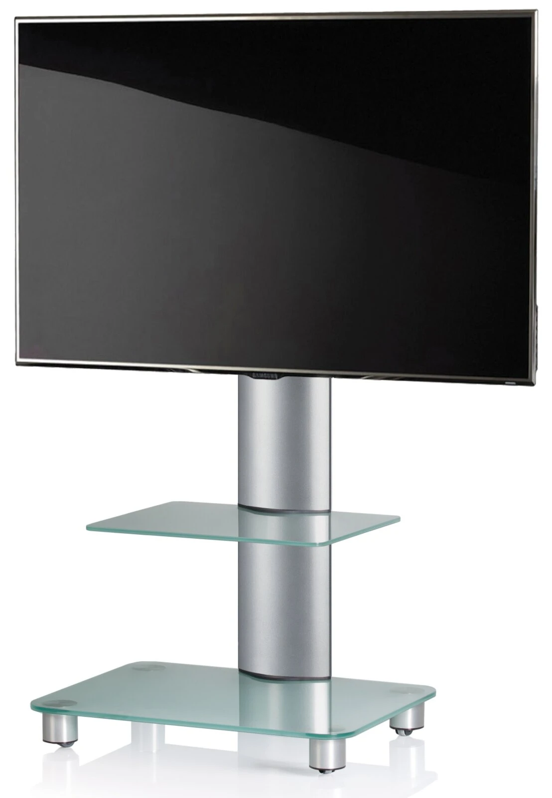 TV-Rack – silber – Mattglas – mit Zwischenboden – für 32-70 Zoll – 60 cm breit