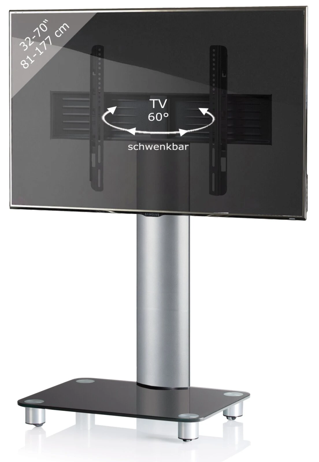 TV-Rack – silber – Schwarzglas – schwenkbar – für 32-70 Zoll – 60 cm breit