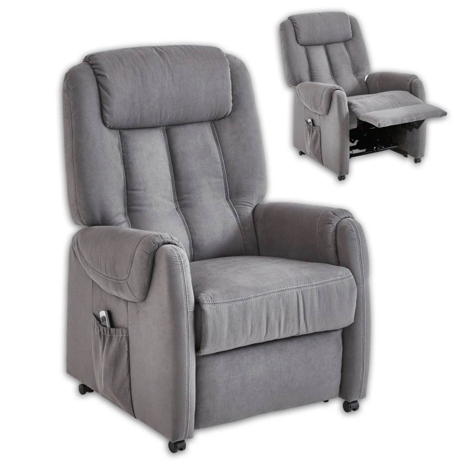 Für gemütliche Fernsehabende ist dieser graue TV-Sessel bestens geeignet. Die dauerelastische Federkern-Polsterung ist für einen weichen und angenehmen Sitz mit Polyätherschaum ummantelt und bietet somit einen hervorragenden Komfort. Mit der motorischen Verstellung von Rücken und Fußteil können Sie auch einen von Luxus genießen. Mittels Fernbedienung und Elektromotor können Sie dies Ihren Bedürfnissen anpassen.