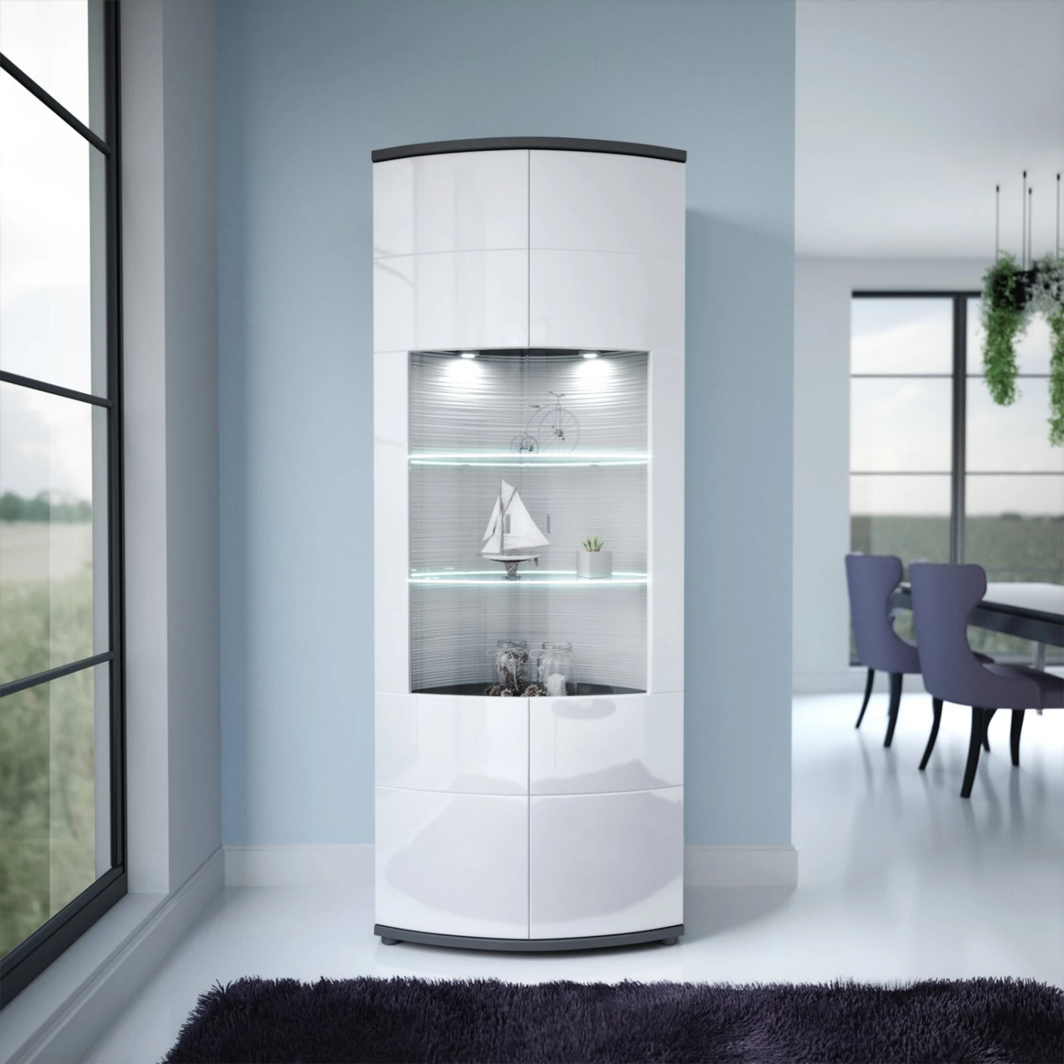 Vitrine GATE – weiß Hochglanz – anthrazit – 203 cm
