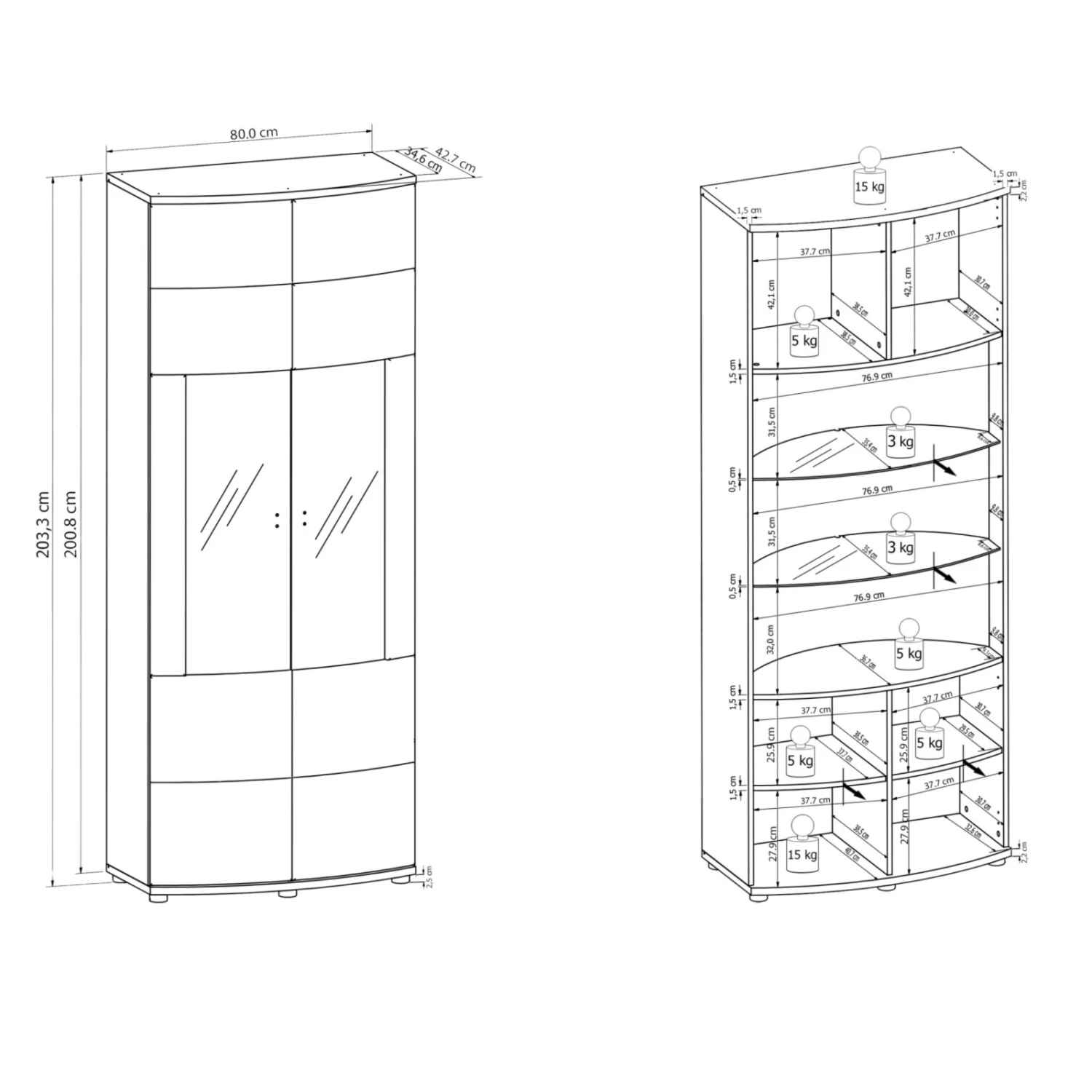 - Maße: BxHxT ca. 80 x 203 x 42,7 cm