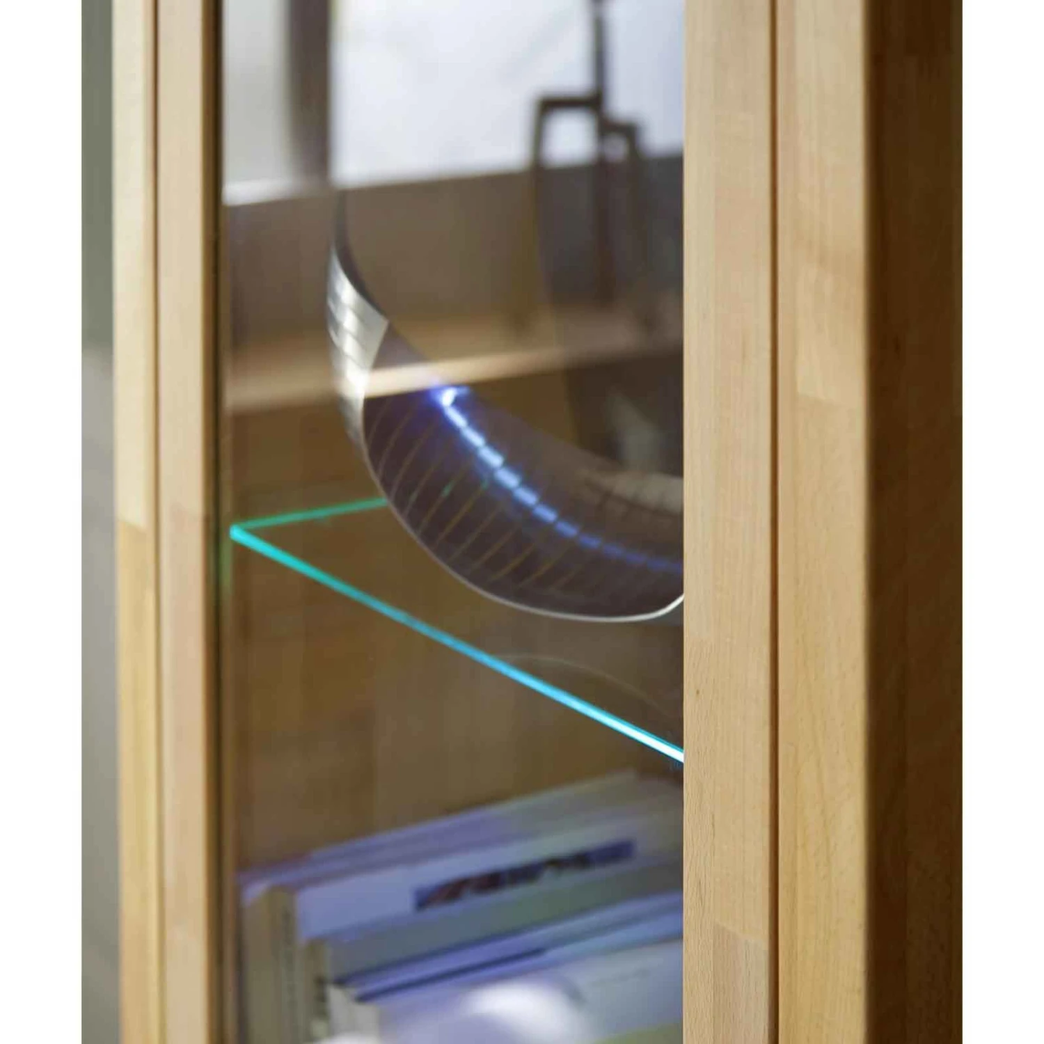 Die schicke Vitrine wird Sie begeistern. Sie besteht aus massiver, geölter Kernbuche und ist ausgestattet mit einer Holz- sowie einer Glastür. Die im Lieferumfang bereits enthaltene 2er Glaskantenbeleuchtung taucht dieses Möbelstick in ein tolles Licht und sorgt so für ein ganz besonderes Raumambiente.