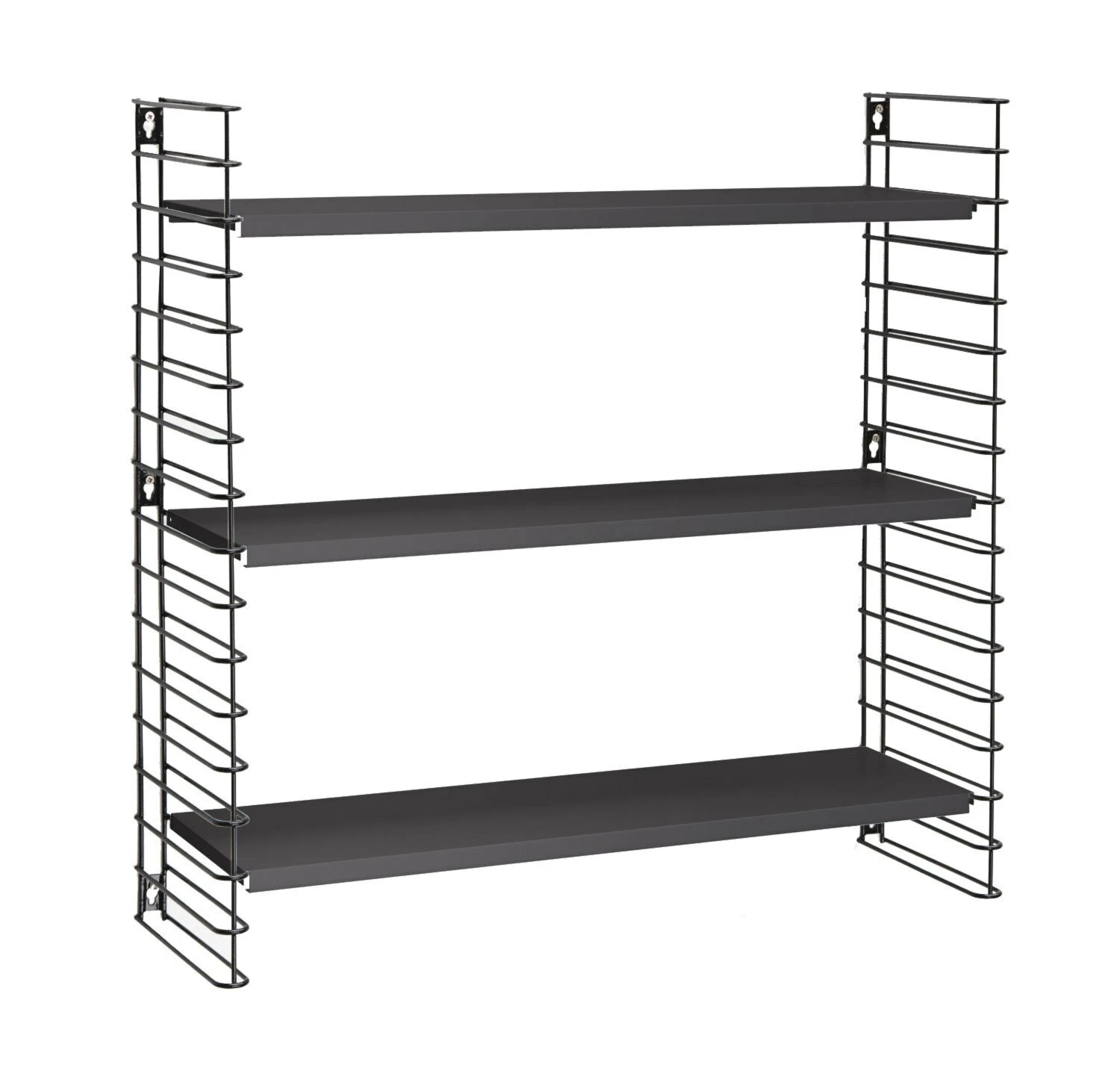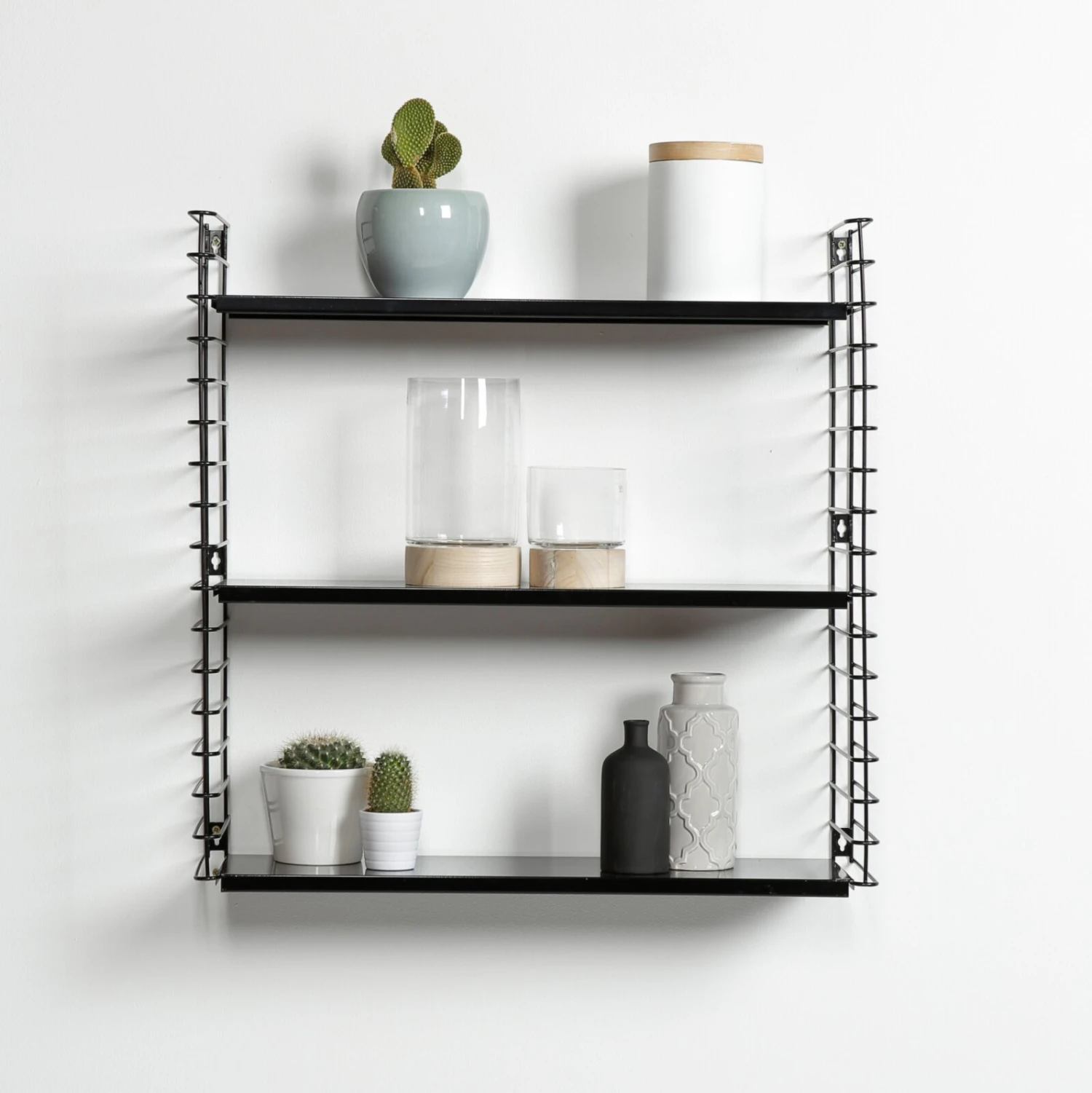 Ein Wandregal in schwarz mit schönen Akzenten. Das Wandregal aus Metall ist äußerst praktisch, da Sie weitere Ablageflächen zum bestehenden Regal hinzufügen können. Außerdem können Sie es mit einem weiteren Regalobjekt auch seitlich oder senkrecht erweitern.