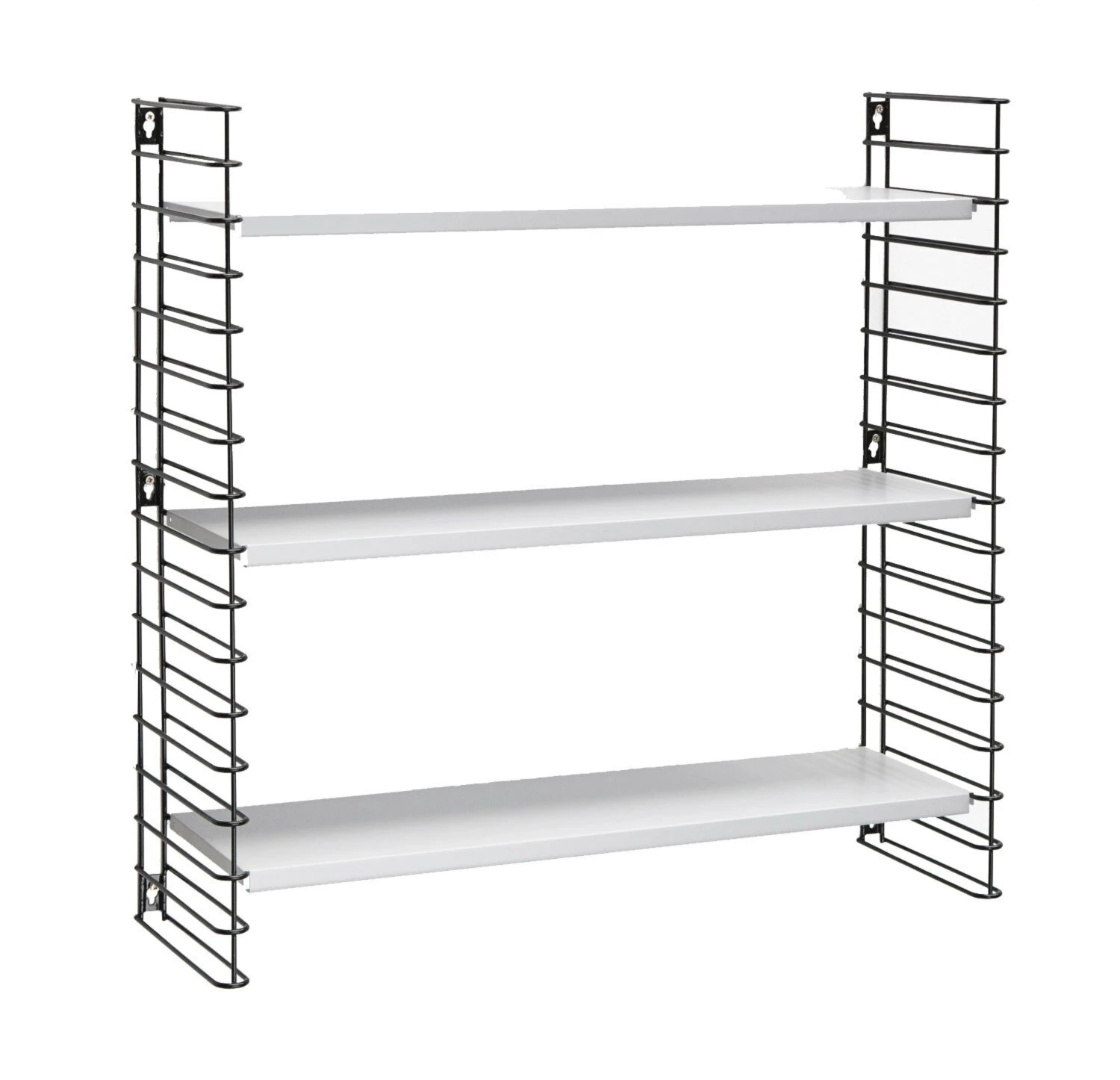Diese elegante Farbmischung aus Weiß und Schwarz darf sich sehen lassen. Das Regal erweist sich als vielfältig und kann überall aufgehängt werden. Beispielsweise können Sie es im Wohnzimmer anbringen und mit Dekostücken und schönen Bildern schmücken. Außerdem eignet sich das Regal auch wunderbar für die Ablage von Büchern. Falls Sie weiteren Ablageplatz benötigen, lässt sich das Regal auch erweitern.