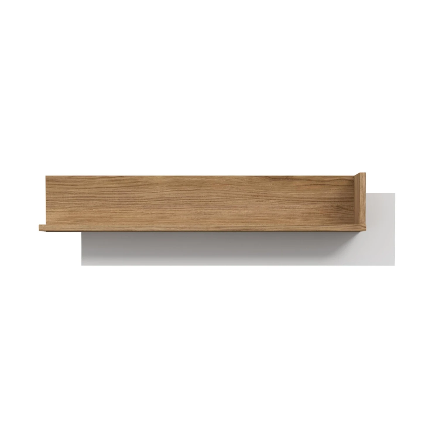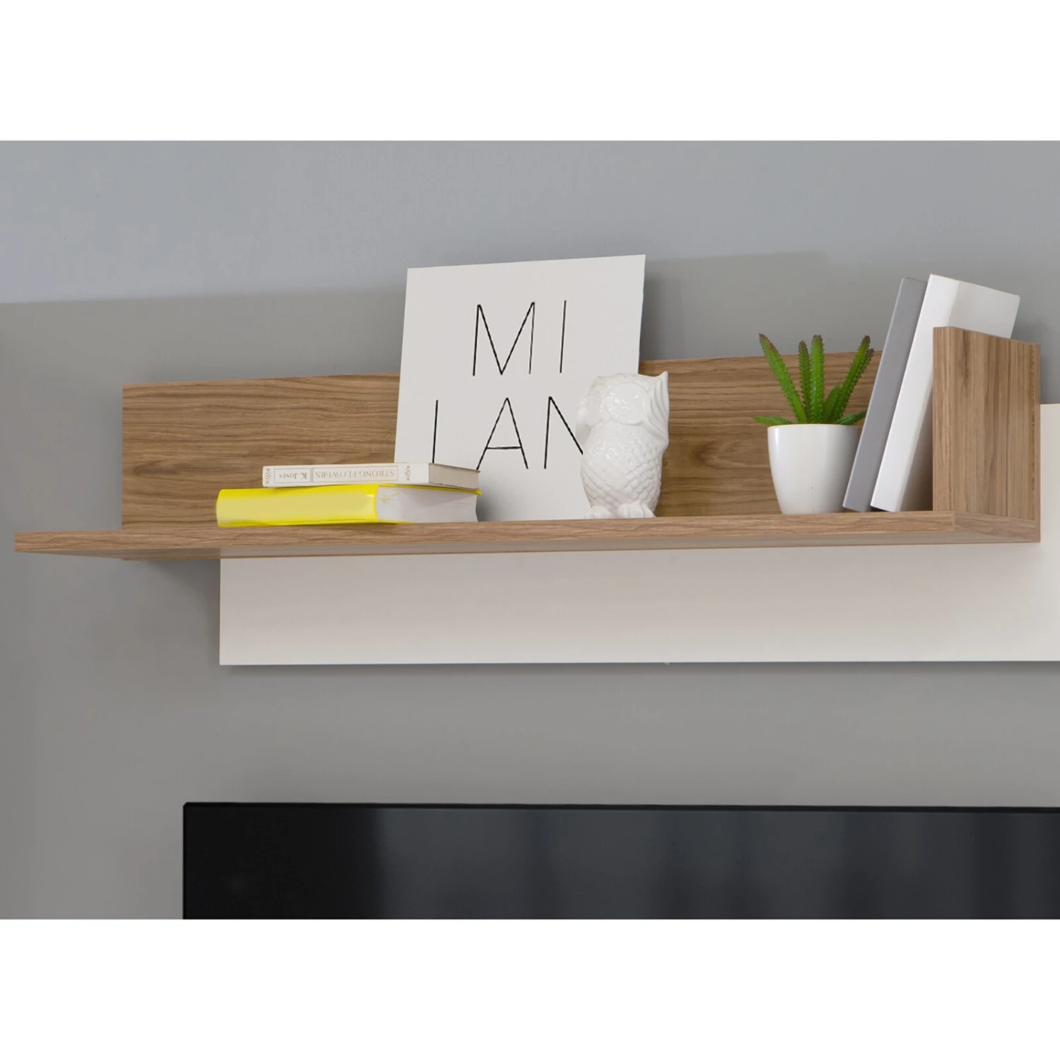 Dieses Wandregal in Cantania Eiche mit einem versetzten weißen Absatz passt ideal in Ihren Wohnbereich. Sie können das Regal individuell an der Wand befestigen. Das Regal eignet sich bestens zum dekorativen Beschmücken und verschönern Ihres Wohnzimmers, damit es noch gemütlicher wirkt.