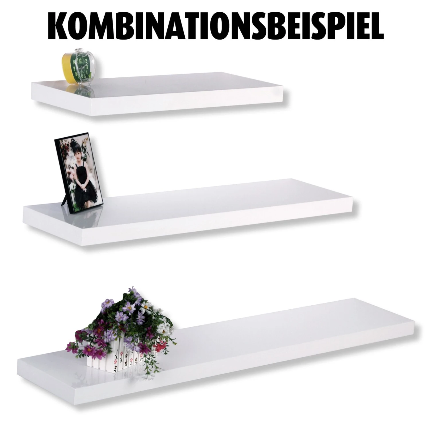 Hochglänzendes Wandregal erhältlich in 3 verschiedenen Größen.