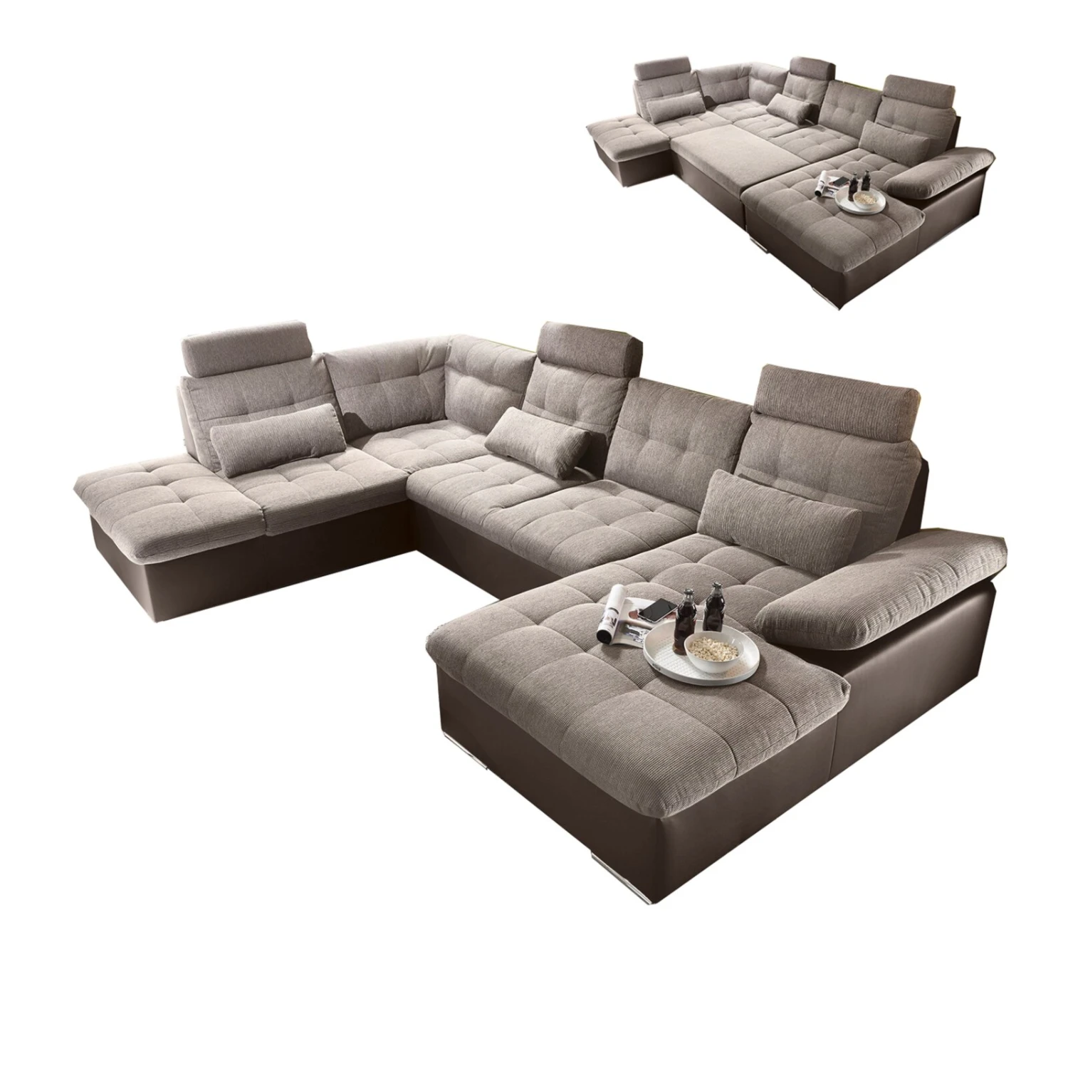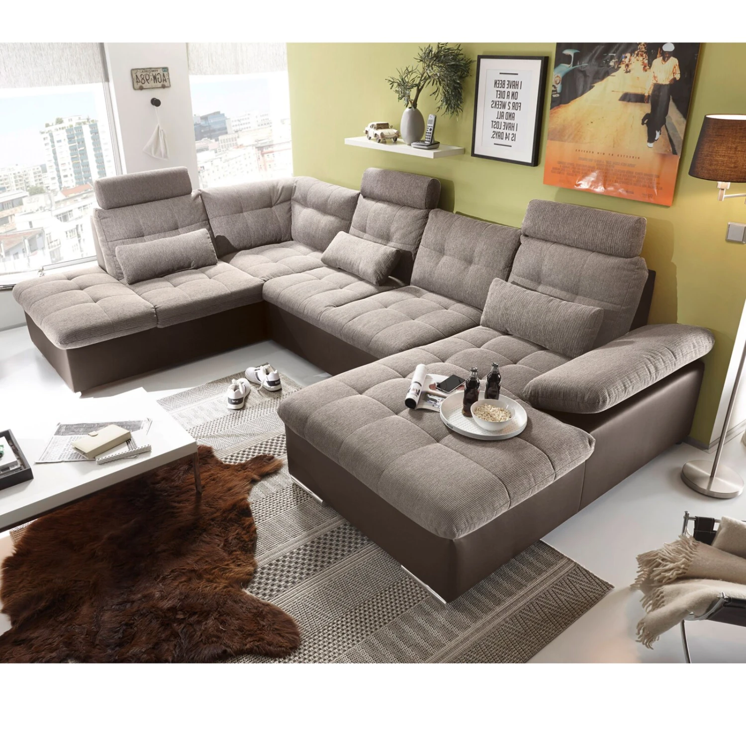 Diese Wohnlandschaft in U-Form wird zum neuen Eye-Catcher in deiner Wohnung. Aufgrund seines modernen Designs passt er sich ganz leicht an jeden Einrichtungsstil an. Das Sofa ist asgestattet mit einer praktischen Liegefunktion, den du deinen Gästen als Übernachtungsmöglichkeit anbieten kannst.