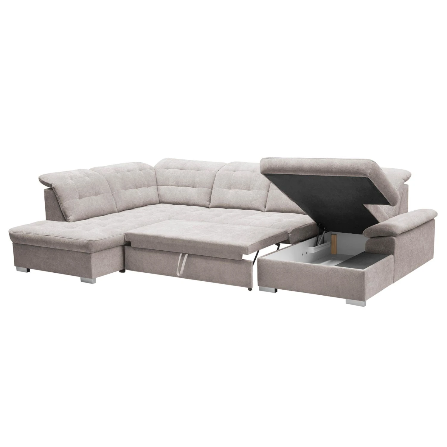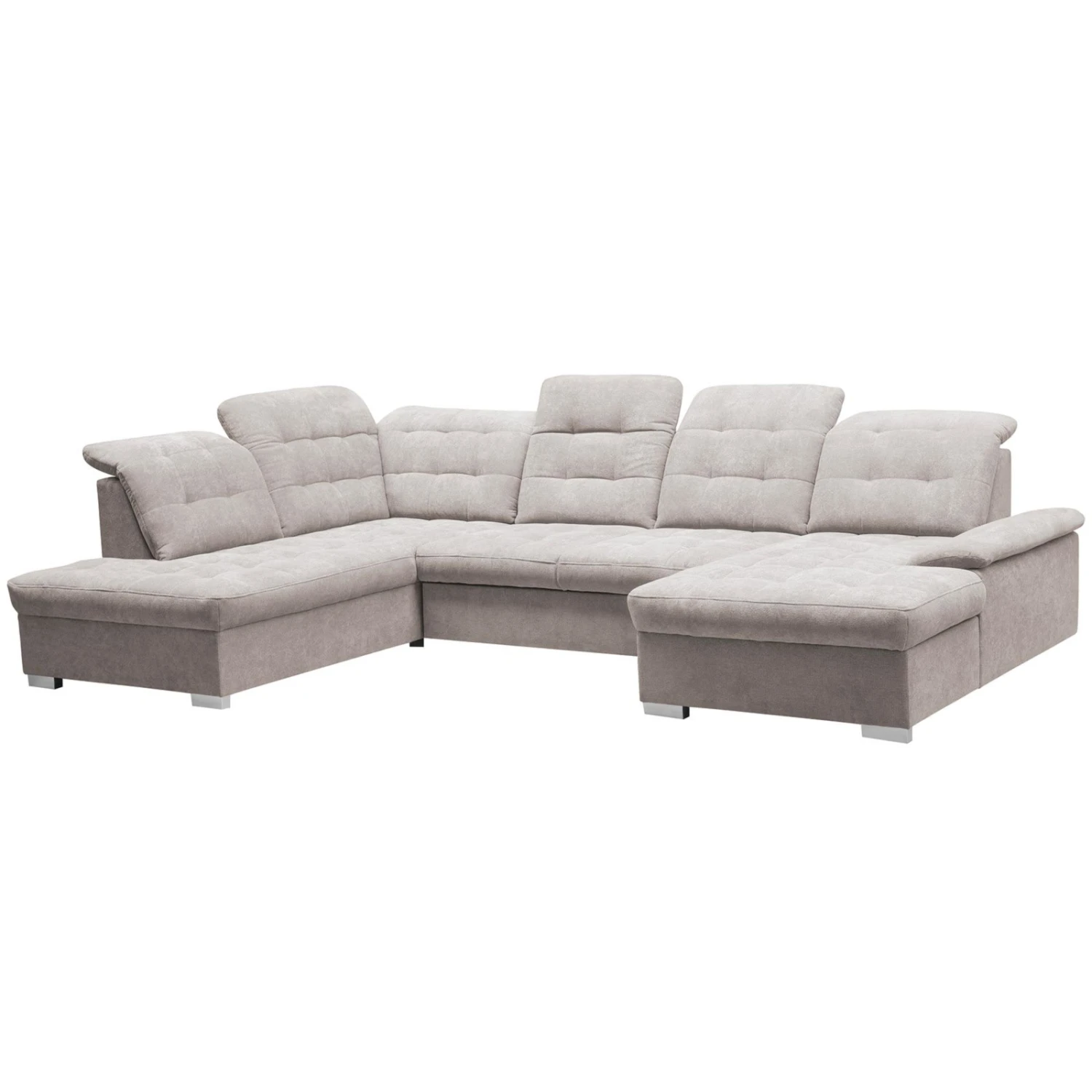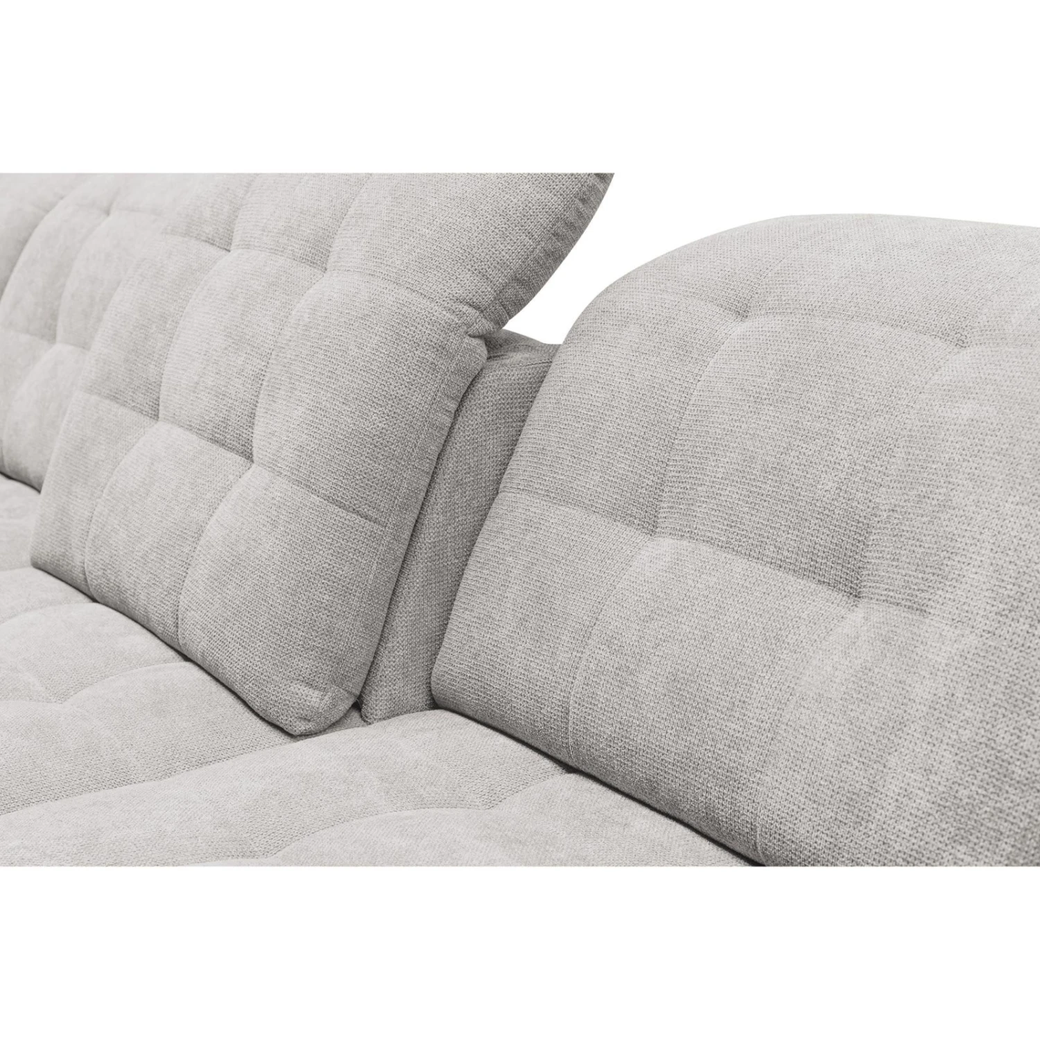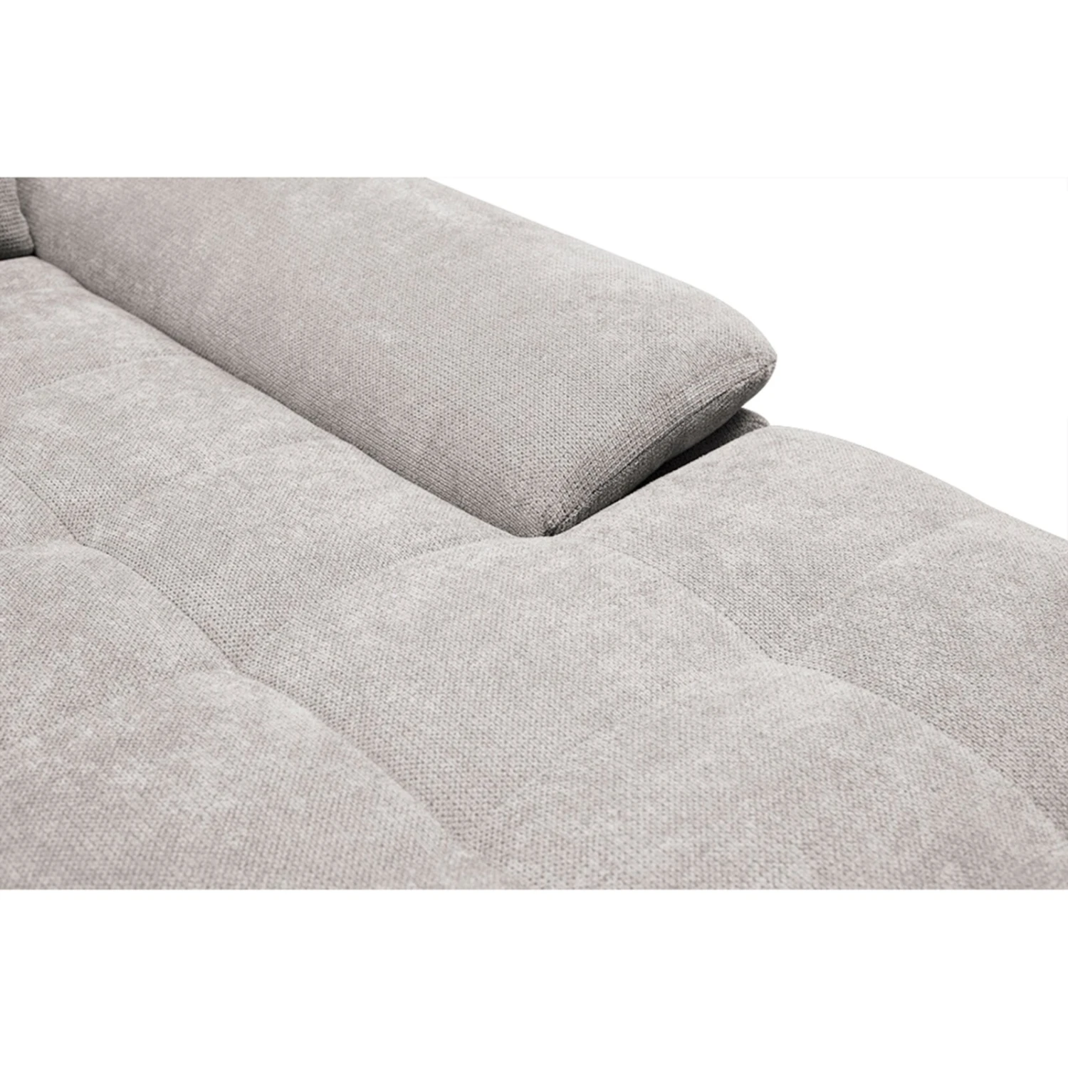 Diese hellgraue Wohnlandschaft ist die reinste Wohlfühloase und mit tollen Funktionen ausgestattet. Für höchsten Komfort sorgen die Kopfteil- und Sitztiefenverstellung, die Sie beliebig verstellen können. Das Kopfteil lässt sich in sechs Stufen variieren und die Sitztiefe kann vierstufig verstellt werden. Zudem können Sie die integrierte Liegefunktion optimal für spontane Übernachtungsgäste nutzen. Die dafür notwendigen Kissen und Decken lassen sich bestens im Staukasten unterbringen.