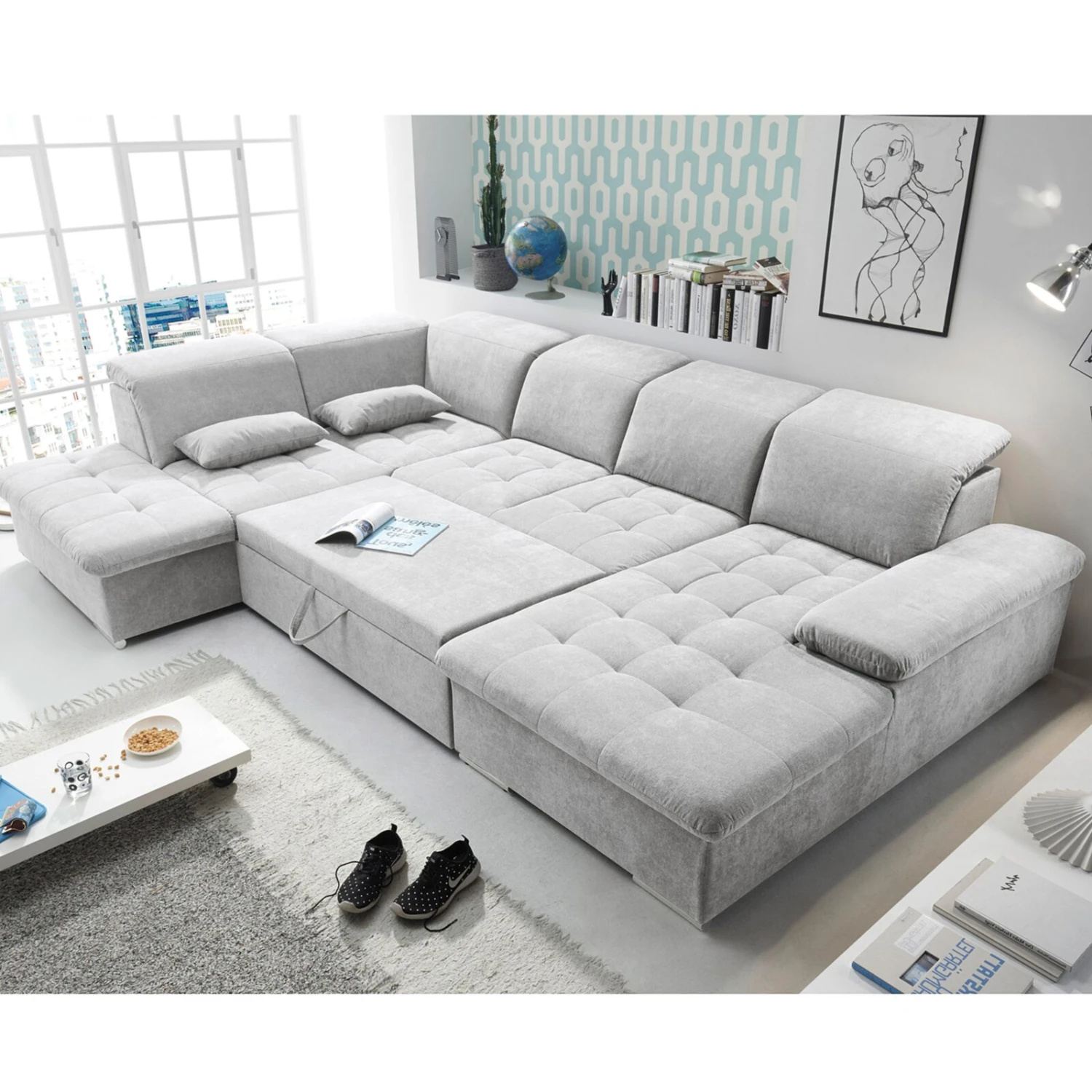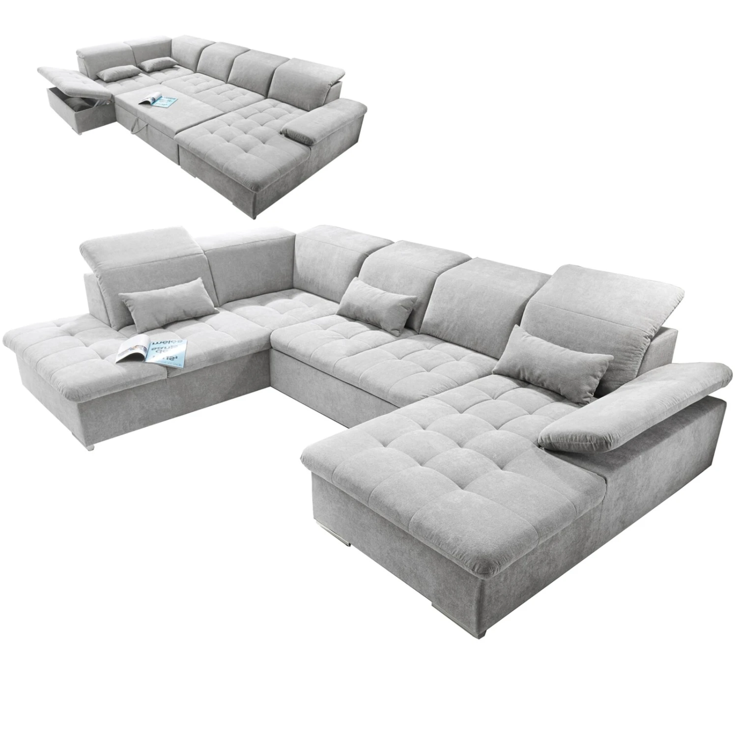 Du brauchst ein Sofa, auf dem man nicht nur gemütliche Abende verbringen kann? Diese Wohnlandschaft ist ein eches Multitalent. Es ist ausgestattet mit einer Kopfteil- und Armteilverstellung, 3 Nierenkissen, einer praktischen Schlaffunktion und mit 5 verstellbaren Kopfteilen. So kannst du auch deinen Gästen einen angenehmen Schlafplatz anbieten.