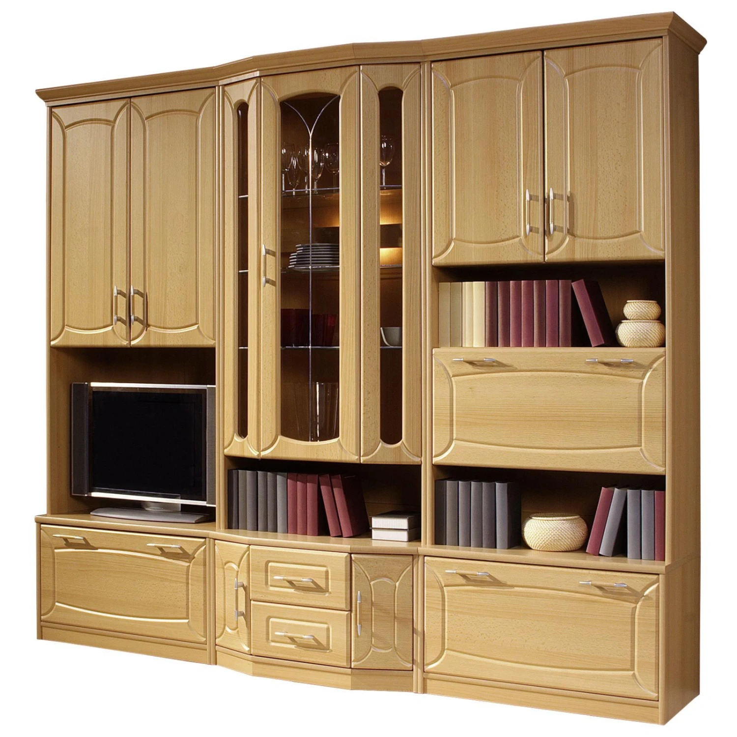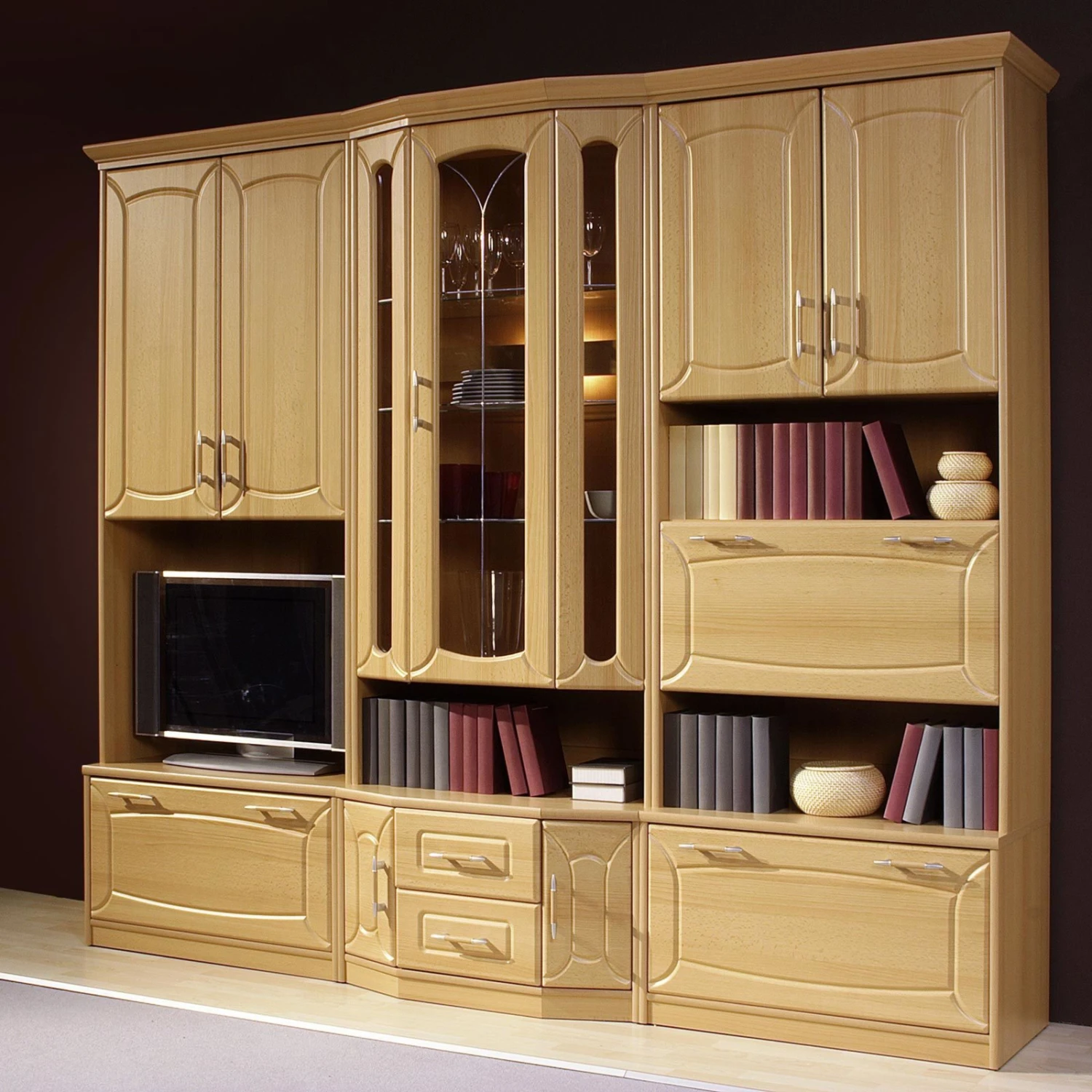 Wohnwand – Buche – mit Beleuchtung – 236 cm