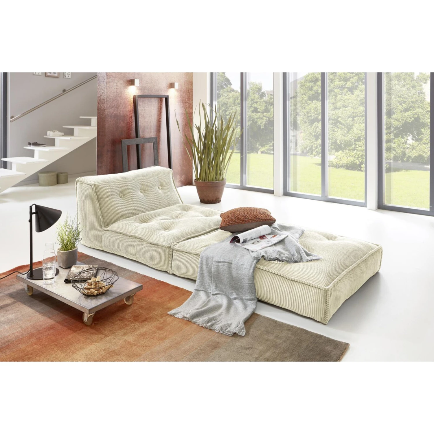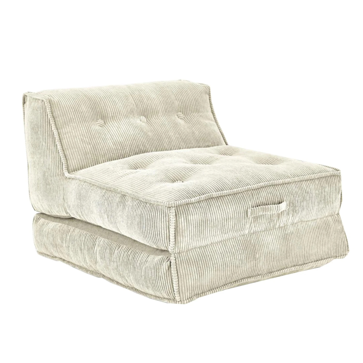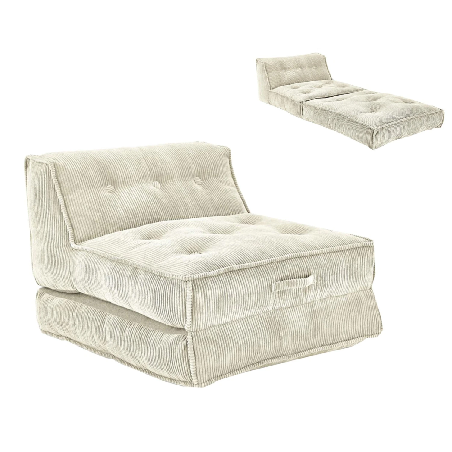 Auf diesem gemütlichen XXL-Relaxsessel aus Kord können Sie ganz entspannt den Tag ausklingen lassen oder aber seelenruhig schlafen. Die Liegefläche von etwa 106 x 205 cm Größe ermöglicht dies. Der Rücken ist echt bezogen, sodass dieser Sessel auch flexibel mitten im Raum aufgestellt werden kann.